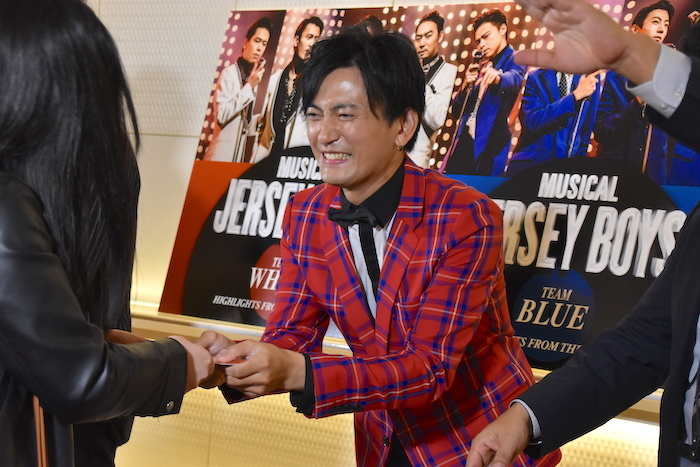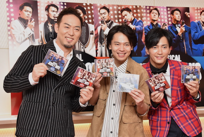 11日には発売記念イベントが行われ、16年の初演、18年の再演時はチームWHITEとして出演したフランキー・ヴァリ役の中川晃教、トミー・デヴィート役の中河内雅貴、ニック・マッシ役の福井晶一が参加。抽選で選ばれた200名のファンたちが、俳優陣とハイタッチをして、特典を受け取った。