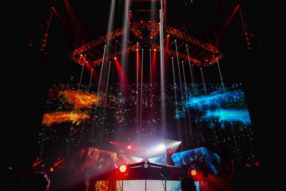 アルバムの冒頭を飾る「FUTURE METAL」から始まり、トライアングルのステージや、巨大な LED 画面に映し出される映像、照明など、全ての演出が会場全体を「METAL GALAXY」の世界観へと引き込む。