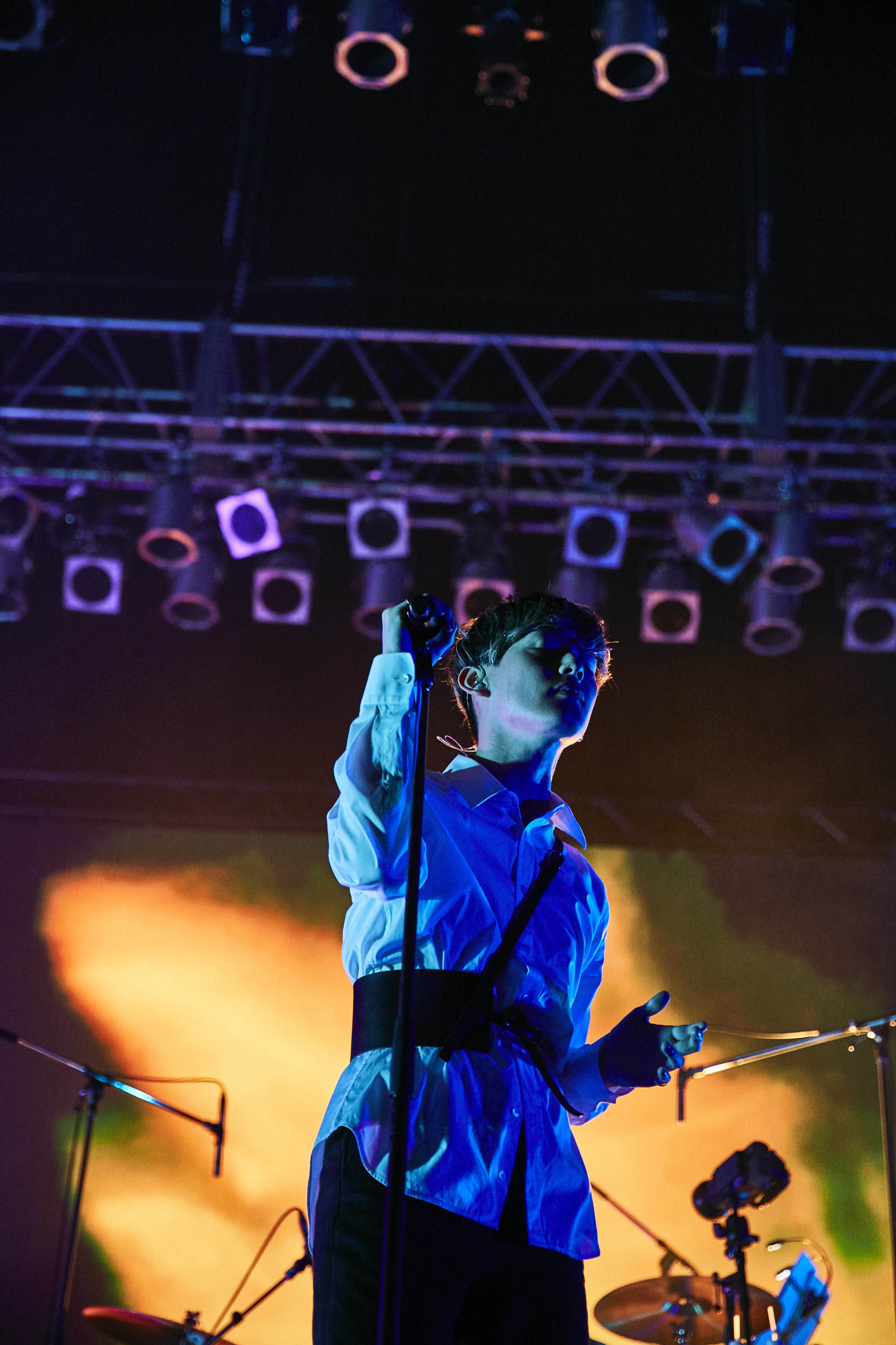 そして、「最後は勝つ」を歌い始める。アンビエントで内省的なサウンドが特徴的な楽曲だが、ライブでは原曲には入っていなかった歪んだエレキギターが奏でられていて、向井の苦悩や、ささくれ立った感情、そして自らを奮い立たせる強い意思を押し出していく。向井はステージのギリギリのところまで前に出てきて、自分に言い聞かせるように、自身の誇りを振りかざすように、そして同じような思いを抱えている人へ歌いかけるように、声を振り絞りながら歌う。その姿は、泥臭いと言ってしまっても過言ではないもので、作品に刻み込んだ自身の思いをライブという場所で解放していくエモーショナルな光景に胸が熱くなった。