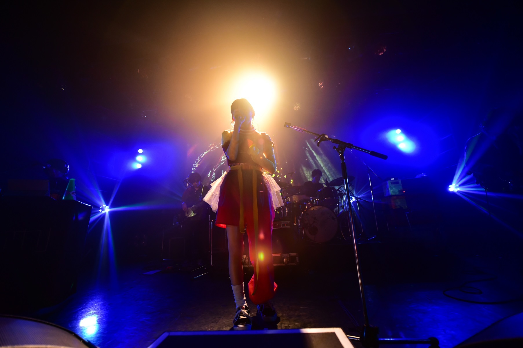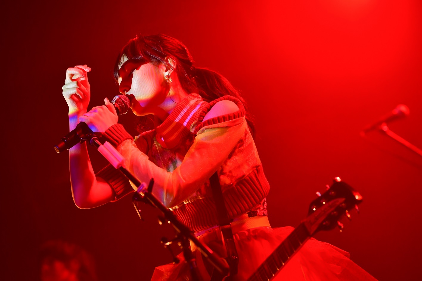 すっかり和み切った会場のムードを切り替えるように、「たぶん、嘘だね。」の切ないメロディが響き渡ると、メロウなエレクトロナンバー「パスポート」、そして蒼山幸子制作プロデュースによるシューゲイザーロック「月だけが聞いている」がオーディエンスを惹きつける。