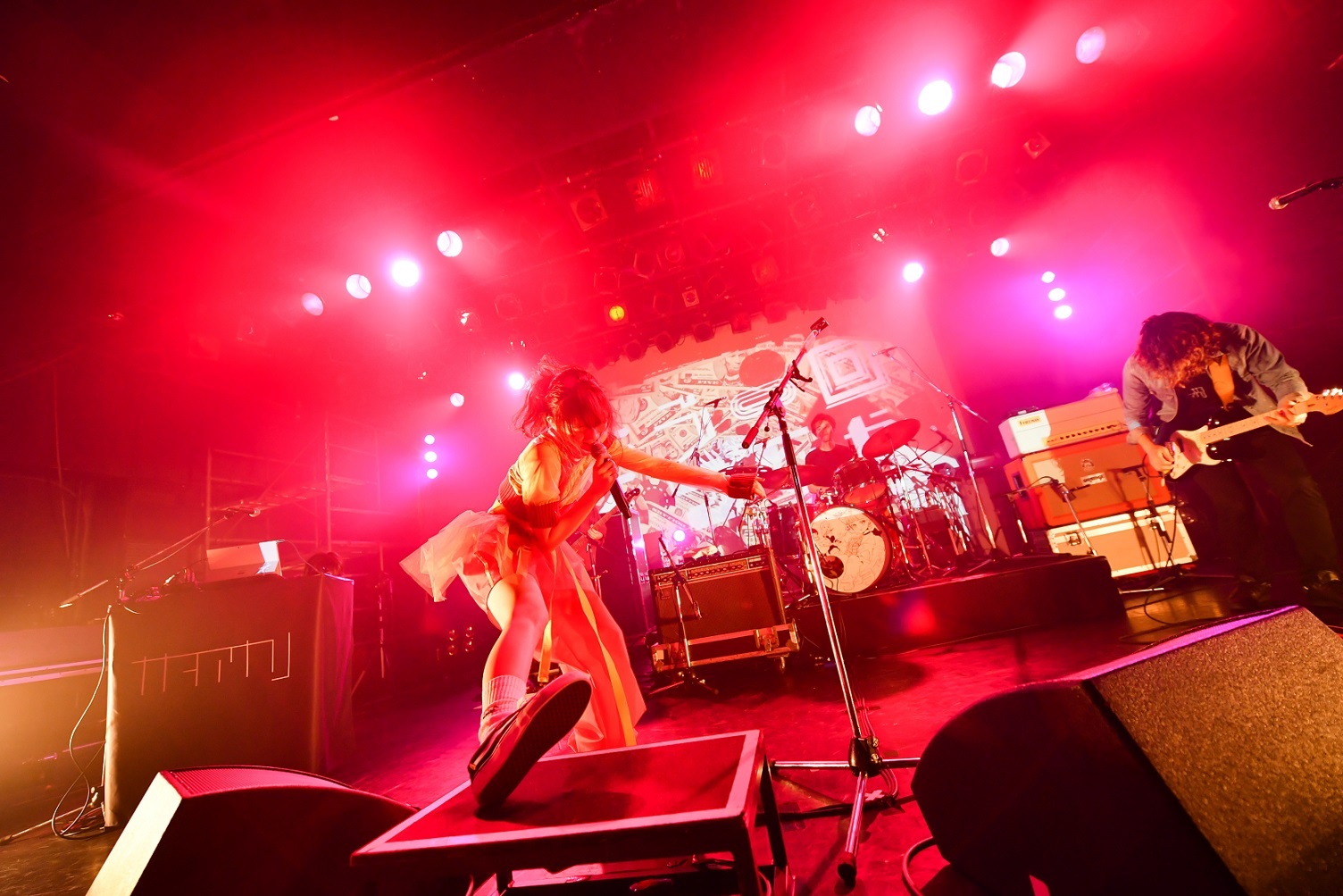 さらなるダブルアンコールでは代表曲「ダダダダ天使」をドロップし、この日一番のシンガロングが巻き起こる。LIQUIDROOMのサイズをものともしない全身全霊のパフォーマンスを演じ切り、やまない喝采を浴びながら、えんじぇるズと共に笑顔でツアーの幕を閉じた。