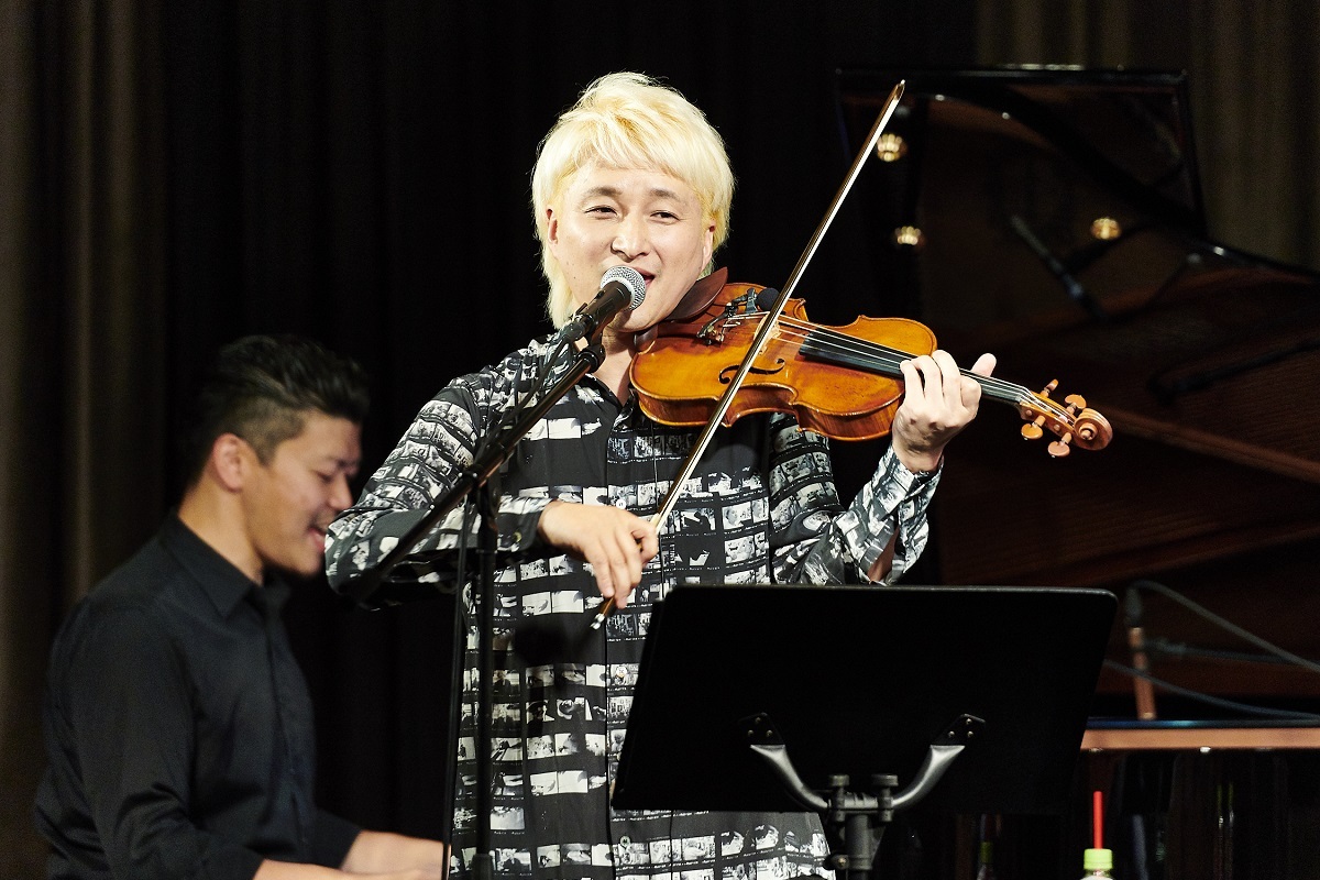 今日のNAOTOはカジュアルな黒のジャケットで、一人でステージに上がるとおもむろにメロディを奏で始める。曲は福山雅治「家族になろうよ」だ。一台のバイオリンからいくつもの歌声が聴こえるような、情感豊かな技巧。本家とは別の魅力を引き出す、NAOTOオリジナルと言ってもいい演奏に聴き惚れる。