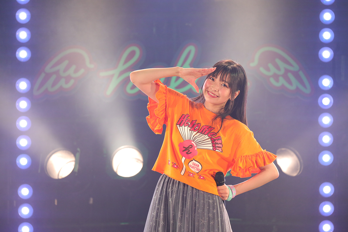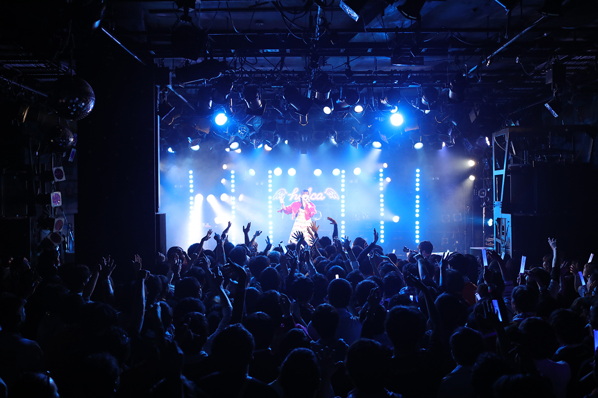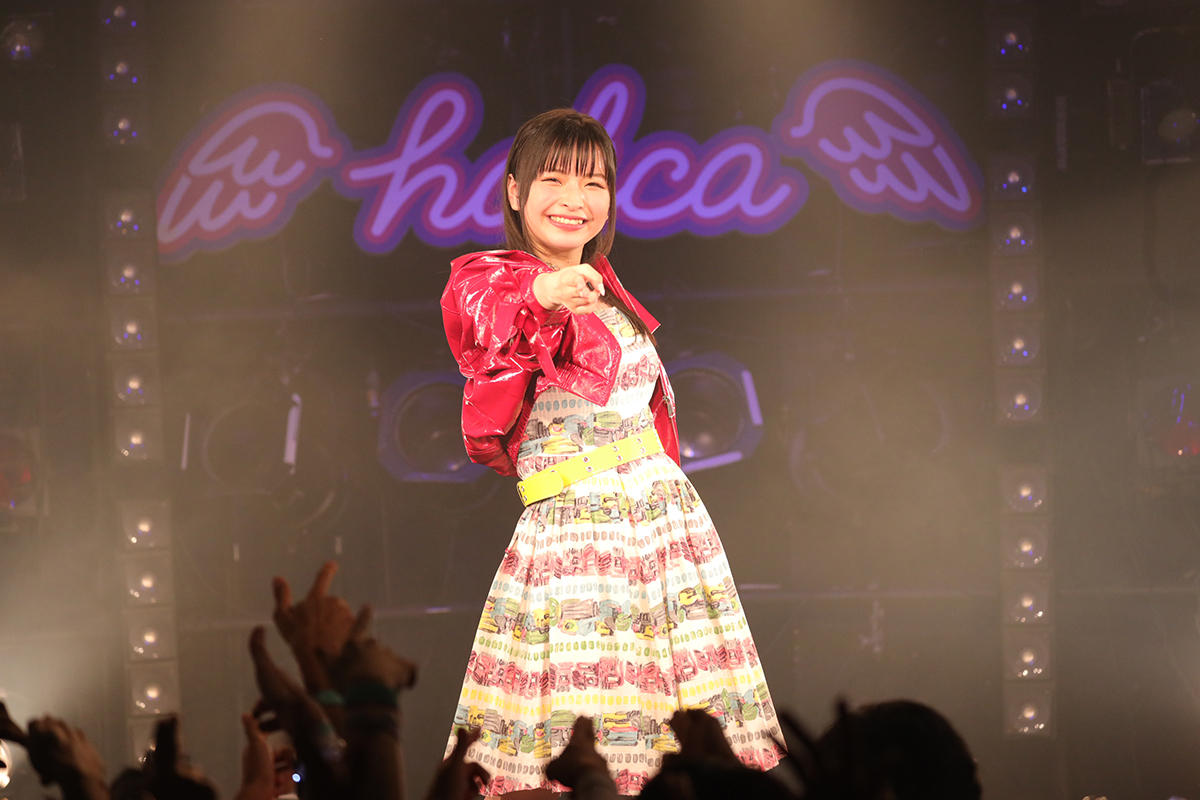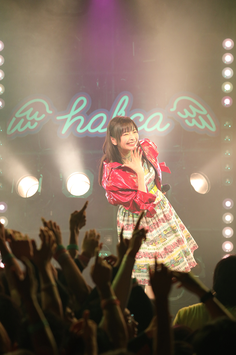 その勢いのままに、TVアニメ『逆転裁判~その「真実」、異議あり!~ Season 2』のEDテーマに起用されてヒットした2ndシングル「スターティングブルー」や「サカナイトデイズ」と、パンチの効いたアップテンポのナンバーを立て続けに披露すると、観客からは自然とクラップが沸き起こった。「みなさん、今日は楽しんでいきましょう」と笑顔であいさつしたhalcaはチャーミングな歌声を聴かせたかと思えば、「オイオイ!」と観客を煽るなど、楽曲ごとに多彩に表情を変えていく。「Complexの事情」でガーリィーな振りでオーディエンスの視線を惹きつけ、「デビューする前に初めて作っていただいたオリジナル楽曲で、とても思い入れのある大切な曲です」と説明したバラード「キミの空」ではしっとりと聴かせた。