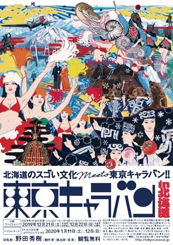 2020年1月11日(土)、12日(日)で開催される『東京キャラバン in 北海道』は、世界的な彫刻家イサムノグチが手掛けたモエレ沼公園(北海道札幌市)のガラスのピラミッドにて、パフォーマンスを上演。また、それに先駆けて2019年12月21日(土)に白老町中央公民館・コミュニティセンター(北海道白老郡)にて、22日(日)にはサッポロファクトリーホール(北海道札幌市)にて、公開ワークショップも行われる(いずれも観覧無料)。