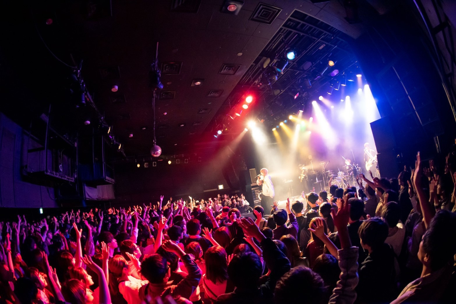 いきなり1曲目に新曲「レーゾンデートル」が披露された。ドラム、ギター、ベースで構成されたサポートメンバーが繰り出すキレのあるバンドサウンドにのせて、Eveは大きな身振りを交えながら、真骨頂ともいえる言葉数の多いメロディを歯切れよく紡いでゆく。専門学校HALとのタイアップで、Eveが初めてCMソングのために書き下ろしたこの楽曲には、<終わらない夢を>というフレーズが象徴するように、何かをはじめようとする人の衝動や熱量、あるいは焦燥感のようなものを感じるナンバーだ。続けて、「渋谷いけるかー!?」というEveの気合いのこもった声を合図に、「ナンセンス文学」や「アウトサイダー」というダンサブルなアップナンバーを間髪入れずに畳みかけると、会場からはイントロが始まるごとに割れんばかりの歓声が沸き上がる。とにかくフロアの熱気がすごい。