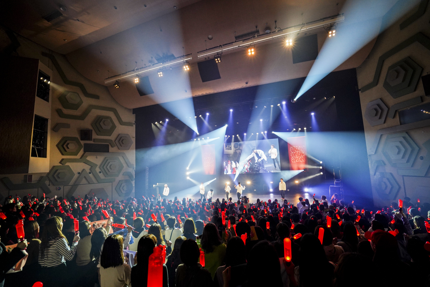 少しのインターバルを置いて、いよいよライブコーナーがスタート。「ADORE YOU」と「BEST FRIEND」の2曲を歌い、「ファンミーティングもいよいよ終わりますね。MCの方も入れず自分たちだけでやるのは大変でしたけど、楽しんでもらえましたよね?みなさん本当にありがとうございました!」「今アルバムの準備もしています!来年もいっぱい会いましょう!」とファンに感謝を伝えた。「ここから盛り上がっていきましょう!」と、ライブ後半は「SINOSIJAK REMIX」「RHYTHM TA REMIX (Rock Ver.)」「DUMB & DUMBER」で会場のテンションを一気に最高潮に。全国6都市で12公演を行った2019年最後のファンミーティングは、大きな盛り上がりの中で終了した。