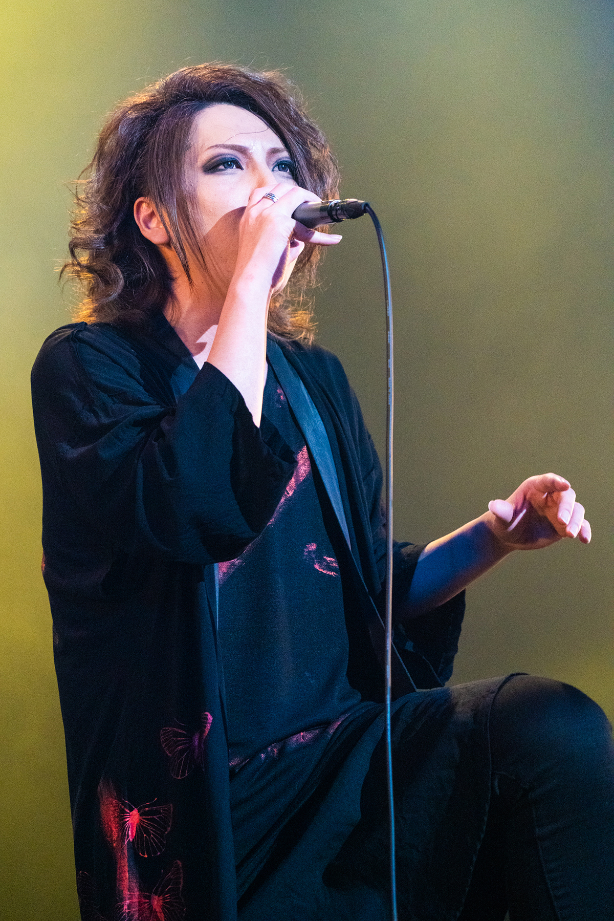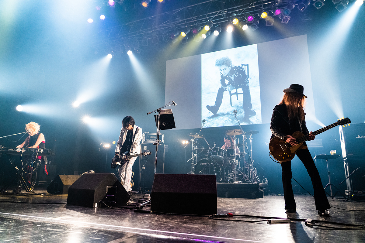 三番手での登場は、こちらもhideに見出され世に放たれたバンドdefspiral。ヘヴィなドラムのビートと空気を切り裂くハードなロックサウンドの「AURORA」が会場を黒く染め上げる。「PULSE」にてTAKAが吠えれば、MASATOのギターが叫び、RYOのベースが唸れば、MASAKIのドラムが踊る。ハードなサウンドの中にシンセサイザーの音色が織り交ぜられた大人なナンバーがフロアを掻き立てる。続いて、数多くのhideイベントに出演している彼らがカヴァーしたのはhideの「限界破裂」と「DICE」。初披露であった限界破裂と共に、忠実に原曲をカヴァーしつつも、シャープにエッジの立ったパフォーマンスには息を呑む。defspiralが代名詞と言えるダンサンブルなロックナンバー「IRIS」では再びフロアを渦に巻き、「GALAXY」ではドラマチックに美しいメロディが響き渡り、ワンマンライヴのような密度のステージを締めくくった。