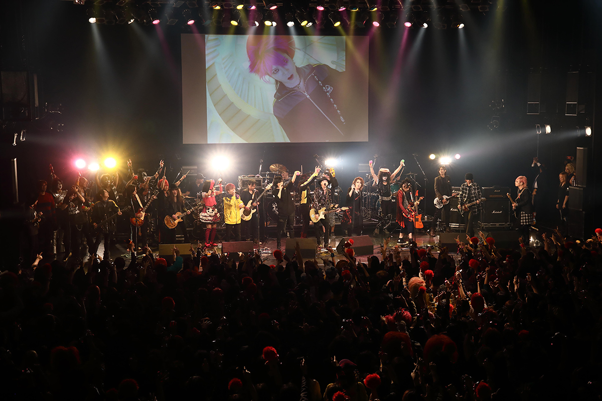 そして最後は、毎年恒例の出演者全員による大セッション。自身のステージに加え、司会から小コーナーの担当までマルチに活躍したCUTTがステージに現れ、このお祭りに出演した全アーティストを順番に呼び込むと、なんとhide with Spread BeaverのメンバーでもあるKiyoshi(Gt.)とJOE(Dr.)がサプライズで登場。最後の最後に飛び出したビッグサプライズにフロアの盛り上がりも最高潮に。「ROCKT DIVE」では会場内に銀テープが舞い、出演者がステージを所狭しと自由に、歌い、踊り、そして盛り上がる。続く「TELL ME」でもその勢いは加速していくばかり。hideが歌い、hideのバンドメンバーが演奏し、hideとゆかりのあるアーティストが寄り添い、hideを愛するファンたちが共に盛り上げ、そこには大輪の笑顔の花が咲く。あの頃と変わらない温かい空間がここにはあり、hideが紡いでくれた繋がりの不変さや、何よりその暖かさを毎年再確認させてくれる。この「hide Birthday Party」は今までも、これからもhideとみんなを結びつける場所であることだろう。