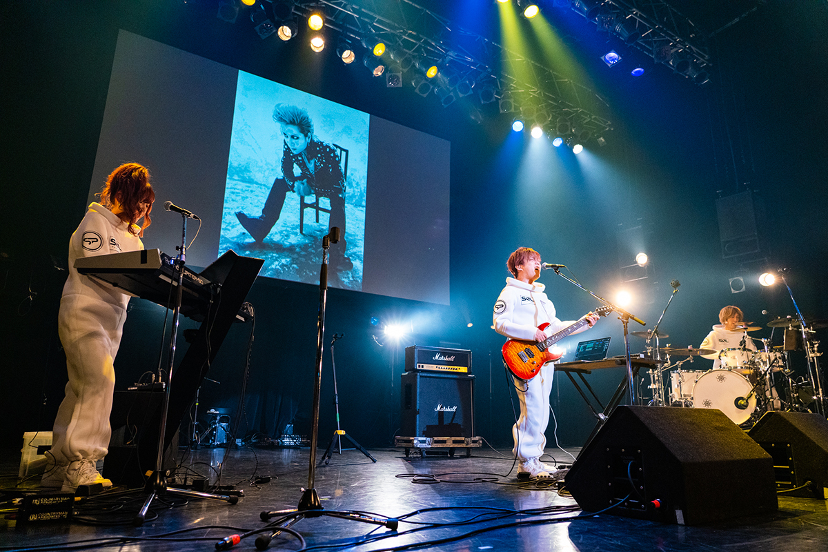 二番手のSPEED OF LIGHTSは、かつてhideに見出されたshameのボーカル・CUTTを中心に結成された、全員が宇宙服を着た宇宙系エレクトロロックバンド。「悔い残さないようにお祝いしようぜ!」と「Fusen Asteroids」では心地よいエレクトロサウンドに合わせた横揺れを誘い、自身のバンド名を冠した「Speed of Lights」では上昇感を伴ったポップな楽曲がフロアを盛り上げる。二番手の登場にして、彼らの生み出す独特な世界観がこのイベントの多様性を強く感じさせてくれる。同時に、CUTT自身は大のhide好きを公言しており、「hideさんに感謝を込めてスペシャルメドレーを披露したいと思います。ただ、普通にメドレーをしても面白くないので」と、「異星人が遠い未来、遠い銀河でhideさんの楽曲を発見するのだけど、その異星人がドジでhideさんの楽曲を再生する時にオケと歌がゴッチャになっちゃったというメドレーをお届けしたいと思います!」と少々トリッキーな説明からhideの楽曲をマッシュアップしたノンストップメドレーを披露。「ピンク スパイダー」のオケに載った「ROCKET DIVE」や、「50% & 50%」のオケに載った「Hi – Ho」など、なんともマニアックで“らしい”展開に会場は笑顔に包まれる。PCのトラブルに見舞われながらも、それでも最後の曲として締めくくったニューアルバムの表題曲「Supernova」では、宇宙的な雄大で浮遊感のある世界を披露してくれた。