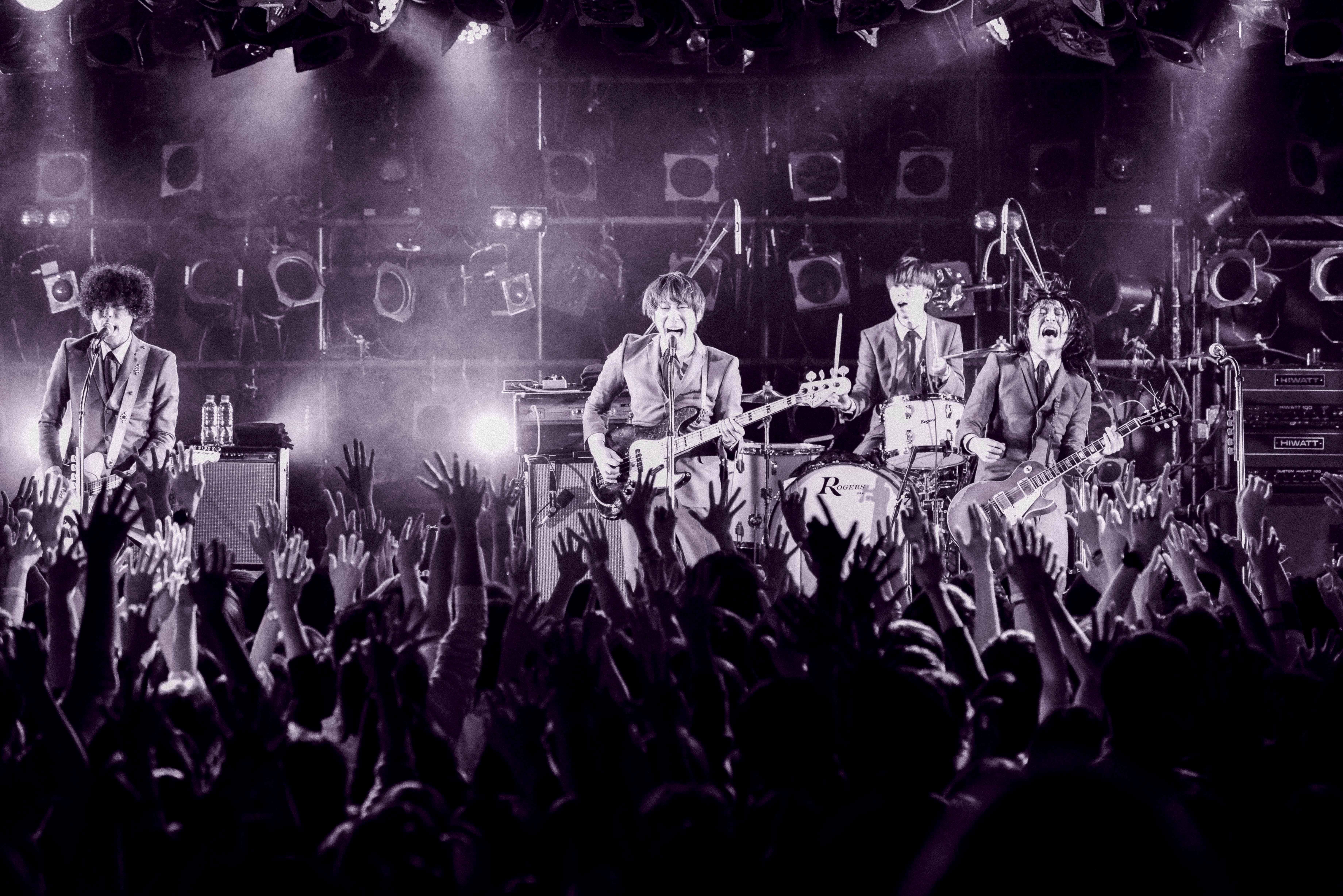 このクアトロは、彼らがデビューして最初に行ったツアーのファイナルの地でもある。そんな感慨深さもあってか、この夜のライブは想像以上の衝撃と多幸感を感じるものだった。すべてのパフォーマンスがアップデートされている。結成から15年を経てなお後ろ向きな惰性は皆無であり、これほどロックンロールの楽しさを体現してくれるバンドは、彼らをおいて他にないとあらためて実感する。ソールドアウトで立錐の余地もないほどのフロアは、初っ端からヒートアップ。その熱気に応えるかのように、バンドサウンドはぐいぐいとグルーヴしていった。新作からの「DON’T SAY NO」は、TAXMAN(G・Vo)の奏でるギターリフが凄まじい吸引力を放ち、「LET’S GO BACK」のJIM(G・Cho)のブギーなギターには思わず弾けるように会場中が揺れる。クアトロという親密な会場のせいもあるかもしれないが、この日のTHE BAWDIESのアンサンブルはワイルドなガレージバンドとしての真骨頂を見せた。一方で同じく新作から、TAXMANがリードボーカルをとる「EASY GIRL」では、胸キュンもののモータウンビートをMARCY(Dr・Cho)がポップに弾けさせ、THE BAWDIESがゴリゴリのロックサウンドで押すだけのバンドではなく、成熟したアンサンブルを武器に、グッドメロディのポップ・ロックを響かせるバンドであることも見せつけてくれる。ROY(Vo・B)のボーカルも、楽曲ごとにワイルドにスウィートに変化し、表情豊かなメロディを放ちながら、観客を惹きこんでいく。4人のバンドアンサンブルはここにきて、さらなるステージに突入しつつあると感じた。