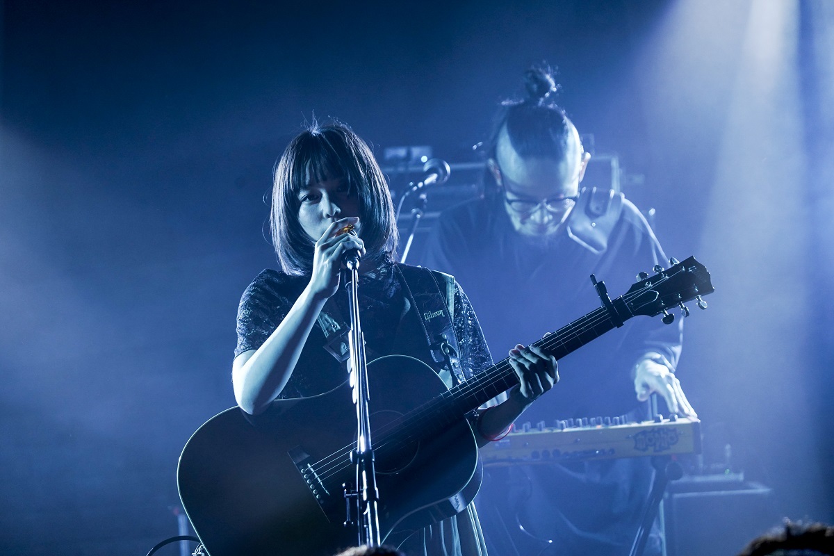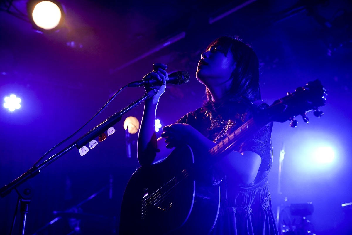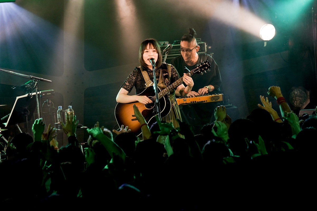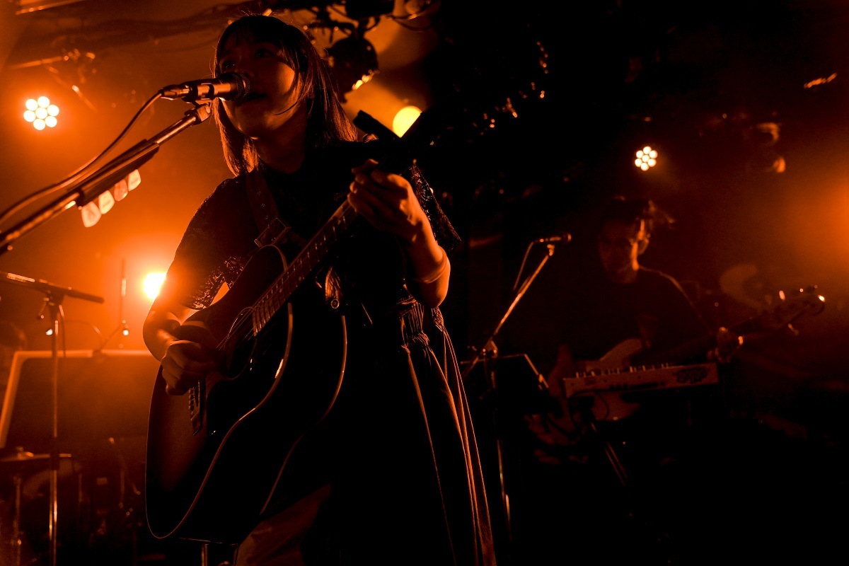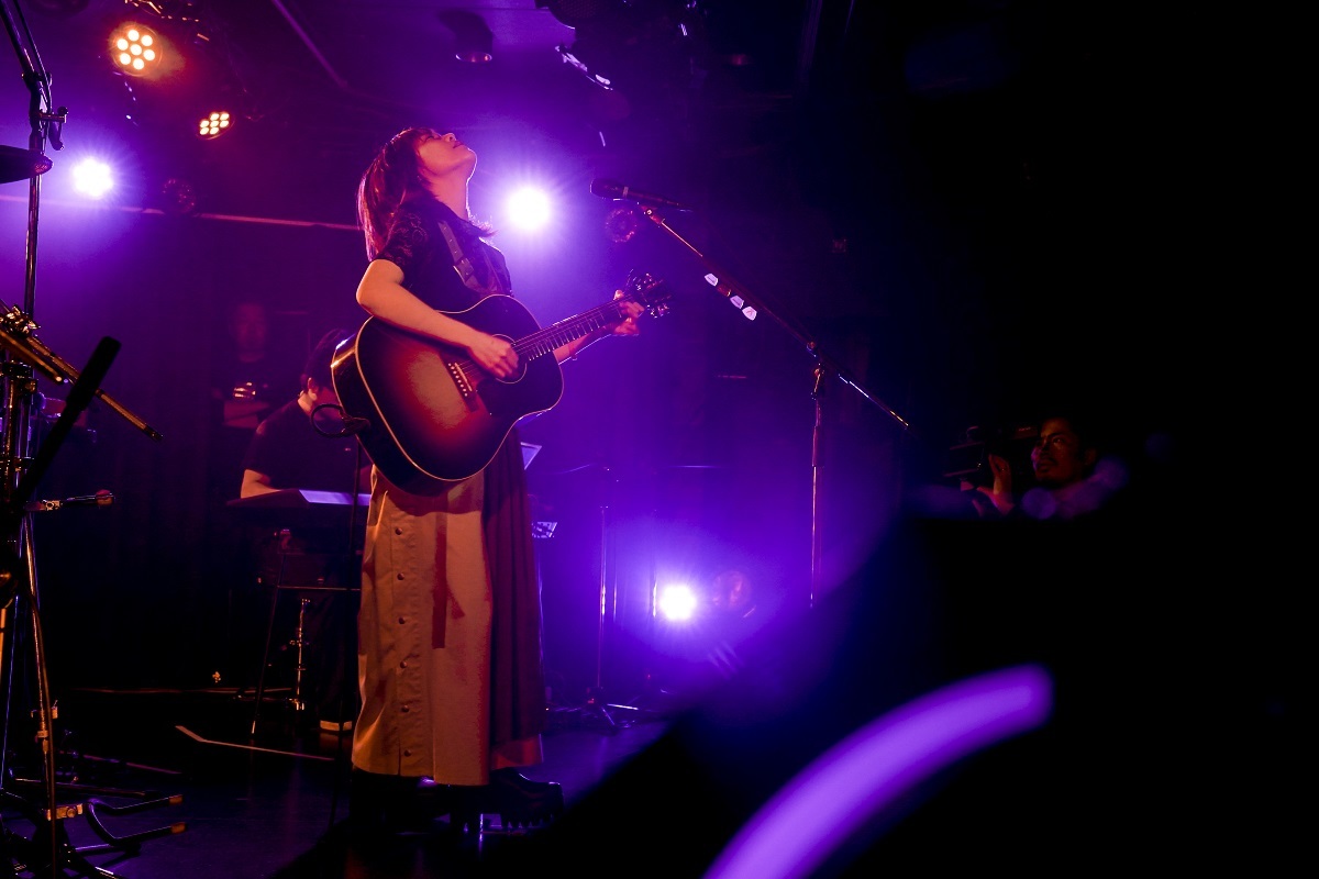 ここからは、一人でアコースティック・ギターの弾き語り。フォーキーなスロー・チューン「たんぽぽ」に続き、「カバーをやります」と言って歌ったのは、崎山蒼志と君島大空の「潜水」だった。みゆなと同い年の崎山と、20代前半の君島。次世代を担う尖った才能と共鳴する、みゆなの若く鋭いセンスを感じるいいシーン。