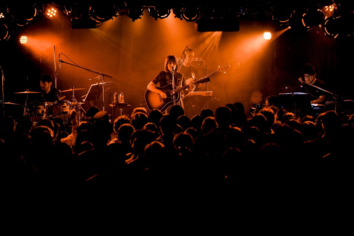 メンバーをステージに呼び戻しての「僕と君のララバイ」はライブのちょうど折り返し地点。スローな曲だが、饒舌なドラムのおかげでしっかりとグルーヴがある。ドラムは柏倉隆史、ベースは村田シゲ、キーボードは中村圭作。オルタナ、パンク、ポストロックなど、幅広く活躍する名手揃いだ。「color」では、柏倉の最高にかっこいい変則ビートが聴けた。この暗い世界に一つだけでも幸せはありますか? マイクをぎゅっと握ってまっすぐ前を見て歌いかける、激しく純粋なライフ・ソング。歌い終えたみゆなが、この曲について説明すると長くなりすぎて「ライブが終わっちゃう」と笑った。莫大な感情の揺れと、繊細な思考の埋蔵量。簡単に要約することができない、それがみゆなの歌。