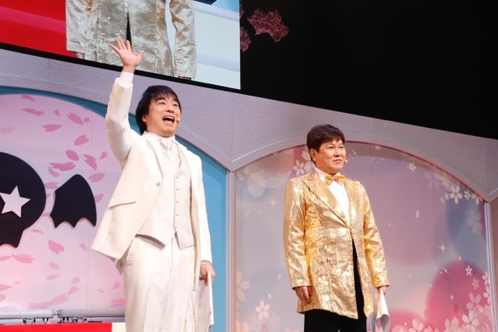 2019年4月開催のステージの様子。メインMC(左:関智一、右:三ツ矢雄二)
