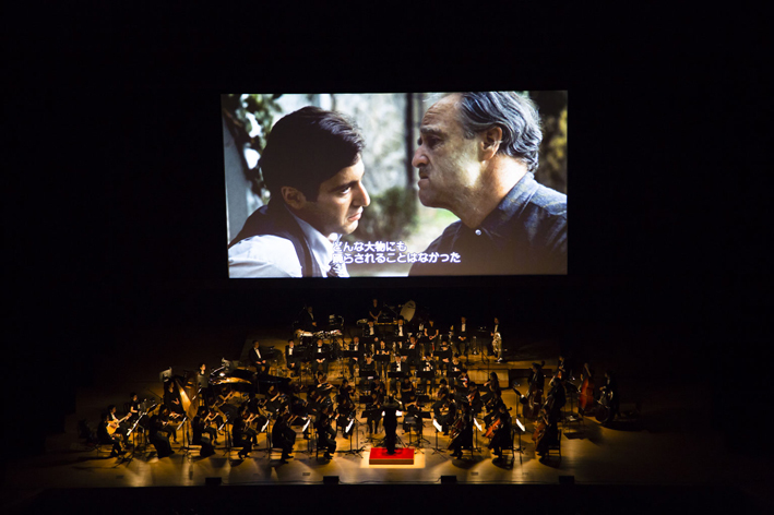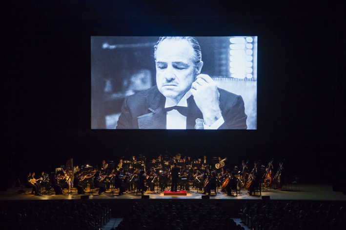 『ゴッドファーザー』シネマ・コンサートは映画のセリフや効果音はそのままに、音楽パートのみフル・オーケストラが大スクリーンでの映画全編上映に合わせて生演奏する、映画+コンサートをライブ感覚で体感できる贅沢なエンターテインメント・ショー。メインテーマ「ゴッドファーザー 愛のテーマ」を始め、映画音楽界の巨匠、ニーノ・ロータによる切なくメランコリックな音楽を、ニコラス・バックの指揮で東京フィルハーモニー交響楽団が迫力の生演奏を聴かせる。