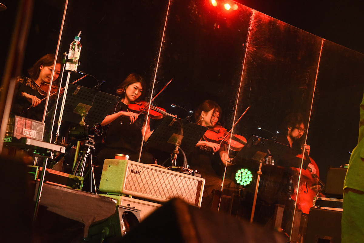 ソングライティングを手がける井上のルーツでもある、エモロックの手触りを持ったインディ期の曲「Just Find What You’d Carry Out」が管と弦の音色によって華やかな装いとなっていたり(エンディングでは木村の派手なドラムソロという見せ場も)、かと思えば続く「Getting Mad」では4人のみの編成となって井上がギターを弾くことでタイトなロックンロールを投下したりと、ライブ全体の流れを踏まえた工夫とアレンジも冴えていた。彼らには優雅な曲や洒落た曲も多いが、ストリングスやホーンが入るからといってそういう曲一辺倒なライブにはならない。アッパーな曲もやるし、「Clock」のようにシークエンスとともにクールな質感を打ち出したりもするし、アコギ2本とカホン、鍵盤というアコースティックセットで「フィルム」を演奏するという試みも。とりわけ、ダイナミックでドラマティックなロックバラード「Ghost」が見事。あえて一旦メンバーがステージを去ってストリングスのみの流麗な演奏に集中させてから、タイトルコールとともにスタートして徐々に白熱していく演奏は、長いアウトロでピークを迎える。各楽器が各々のリミットを外していくかのような名シーン。