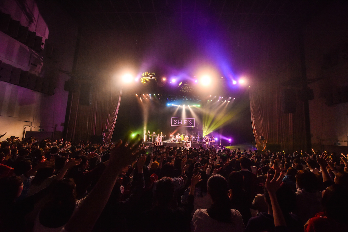 やはりこの企画は良い。SHE’Sが弦楽四重奏とホーン隊とともに行うホールワンマンシリーズ、シンクロこと『Sinfonia “Chronicle”』。同タイトルが付いてから今回で2度目だが、2017年に行ったホールツアーでもストリングスをフィーチャーしていたので、いつもの編成にプラスアルファが施されたSHE’Sを筆者が観るのは、これで3度目ということになる。