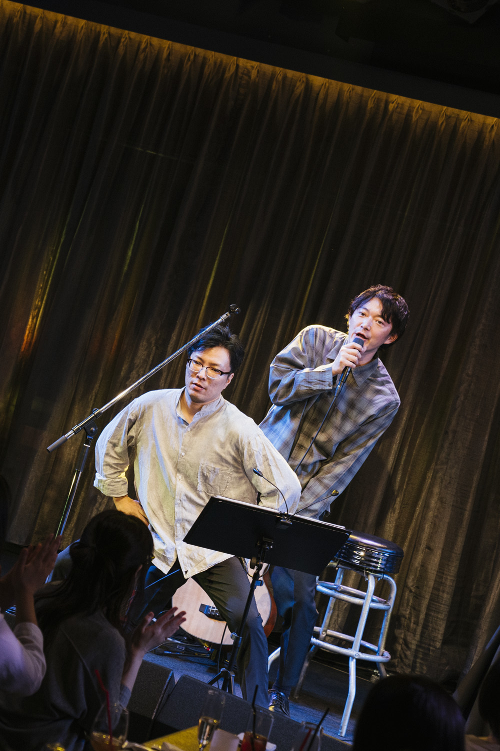 第一部を2人が敬愛するアーティスト・KANの名曲「カレーライス」のカバーで終え、休憩をはさんだ第二部では、中盤にシークレットゲストとして盟友・和田唱が登場。和田がギターでレコーディングに参加した2ndEP収録の「Encore!Encore!」、The Beach BoysのCOVER「Come Go With Me」、TRICERATOPSの「FEVER」の3曲を3人で披露し、ファイナルに花を添えた。
