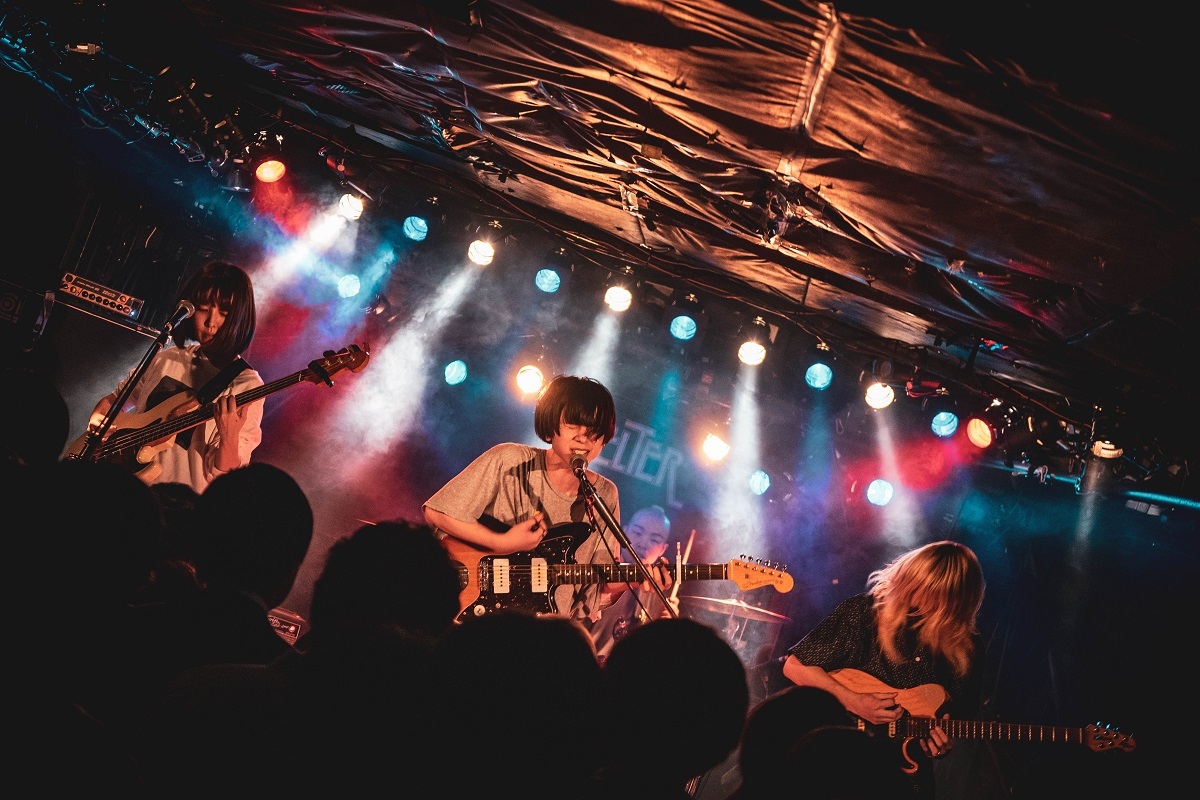 開演時刻を少し過ぎた頃、高速で派手なダンスミュージックをSEにメンバーが現れた。マッシュカットと切り揃えた前髪が印象的なボーカリスト。金髪ロン毛、ザ・ロックンローラーという風貌のギタリスト。ボブカットで丸い目が愛らしい女性ベーシスト。モヒカンでややいかつめに見えるドラマー。俗な言い方になってしまうが、例えこの4人が同じ学年のクラスメートだったとしても、つるんでいるイメージはあまり浮かばない。それくらい見た目の印象がバラバラな4人だ。