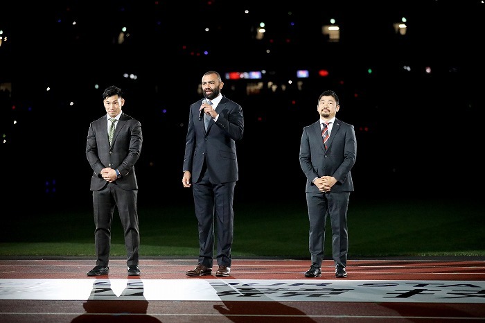 開会宣言の後は【スポーツパート】。サッカー界のレジェンド・三浦知良、さらにはラグビー日本代表のリーチマイケル、中村亮土、田中史朗が登場し、観客ら大きな歓声と拍手を持って迎えられた。三浦は「この国立競技場で皆で新しい歴史を作っていきましょう」と呼びかけ、「これからオリンピアン、パラリンピアンを生み出していくんですね」と新しい競技場に期待を寄せていた。
