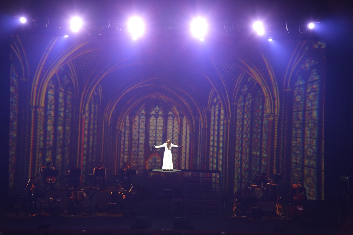 稲穂が教会の厳かなグラフィックに変わった。舞台の一段高いところに上がった半﨑が「Amazing Grace」のパートを歌い出すと、これまで隣りにそっと寄り添うように届いていた歌が瞬時に力強いものへと変貌。まるで大地に降る恵みの雨のように声が天井から降り注ぎ“よくぞご無事でここまで生きてきました”と労うように、いまを生き抜き、ここに集まった観客を讃える。別に歌や歌詞がそんなことをいっている訳ではない。半﨑の情感溢れる歌を翻訳すると、そんなニュアンスなのである。