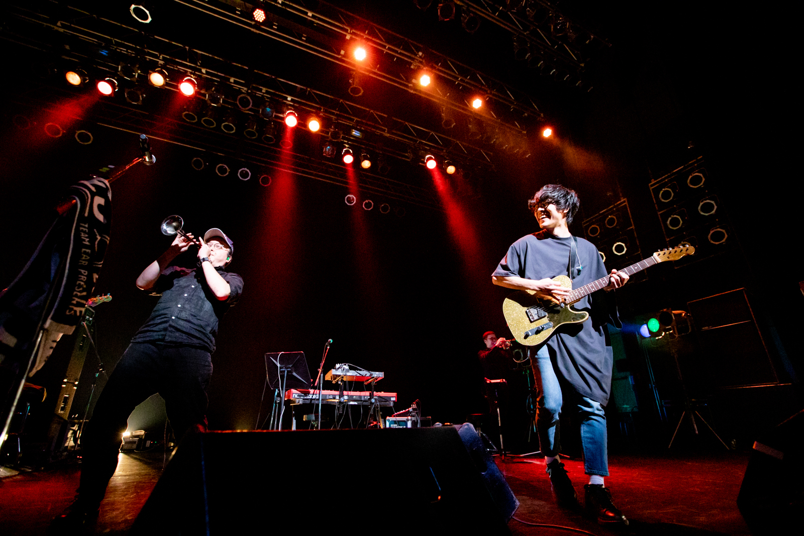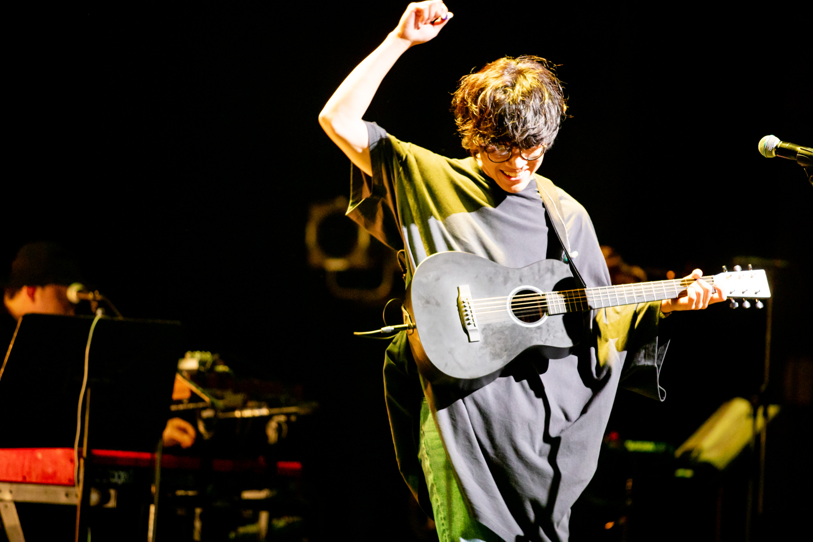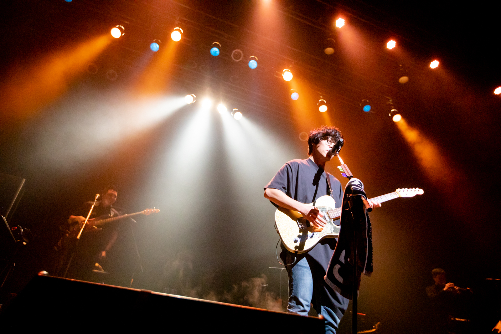 今度はパステルカラーのエレキに変えたクラウドが、自分の足下を覗き込むようにしながら、「フグおいしい。みょうがおいしい。松屋おいしい」と言って歌い始めたのは、「早安晨之美」。昨年の来日公演では重厚感のあるパワフルなアレンジに驚かされたが、今回は原曲に近い爽やかな雰囲気でありつつ、さらなる洗練されたポップスに。