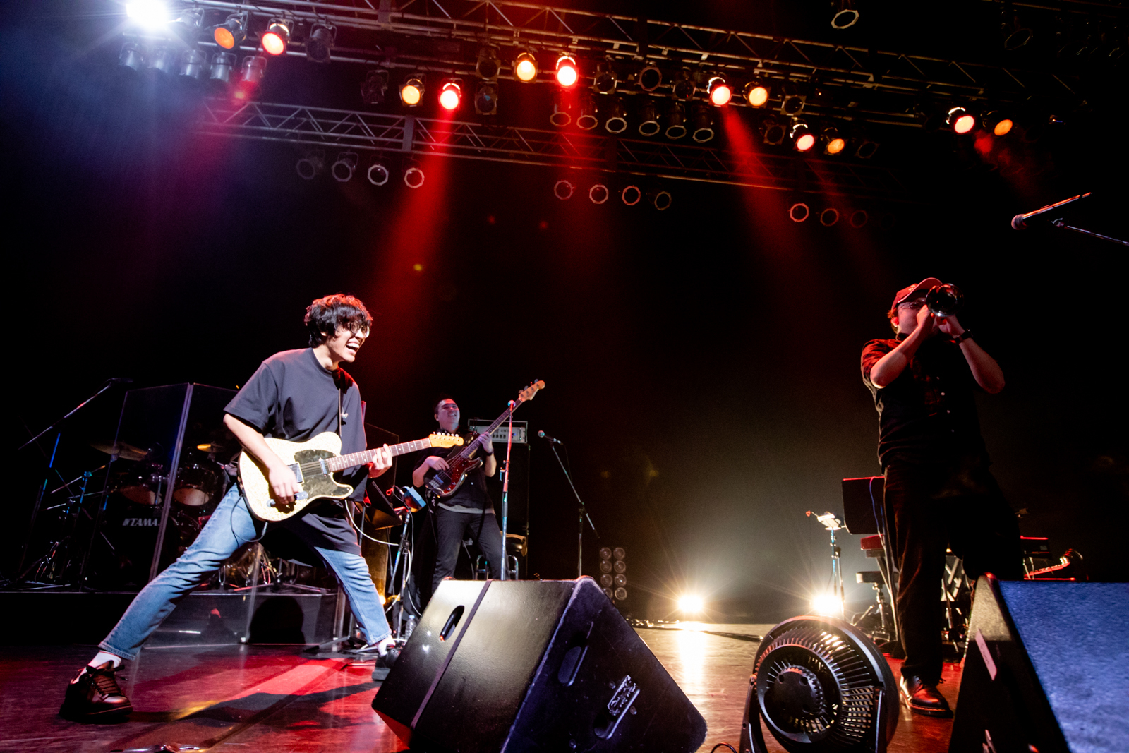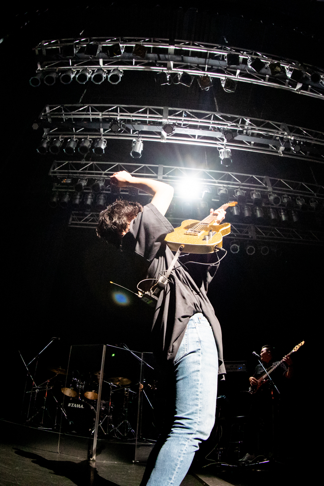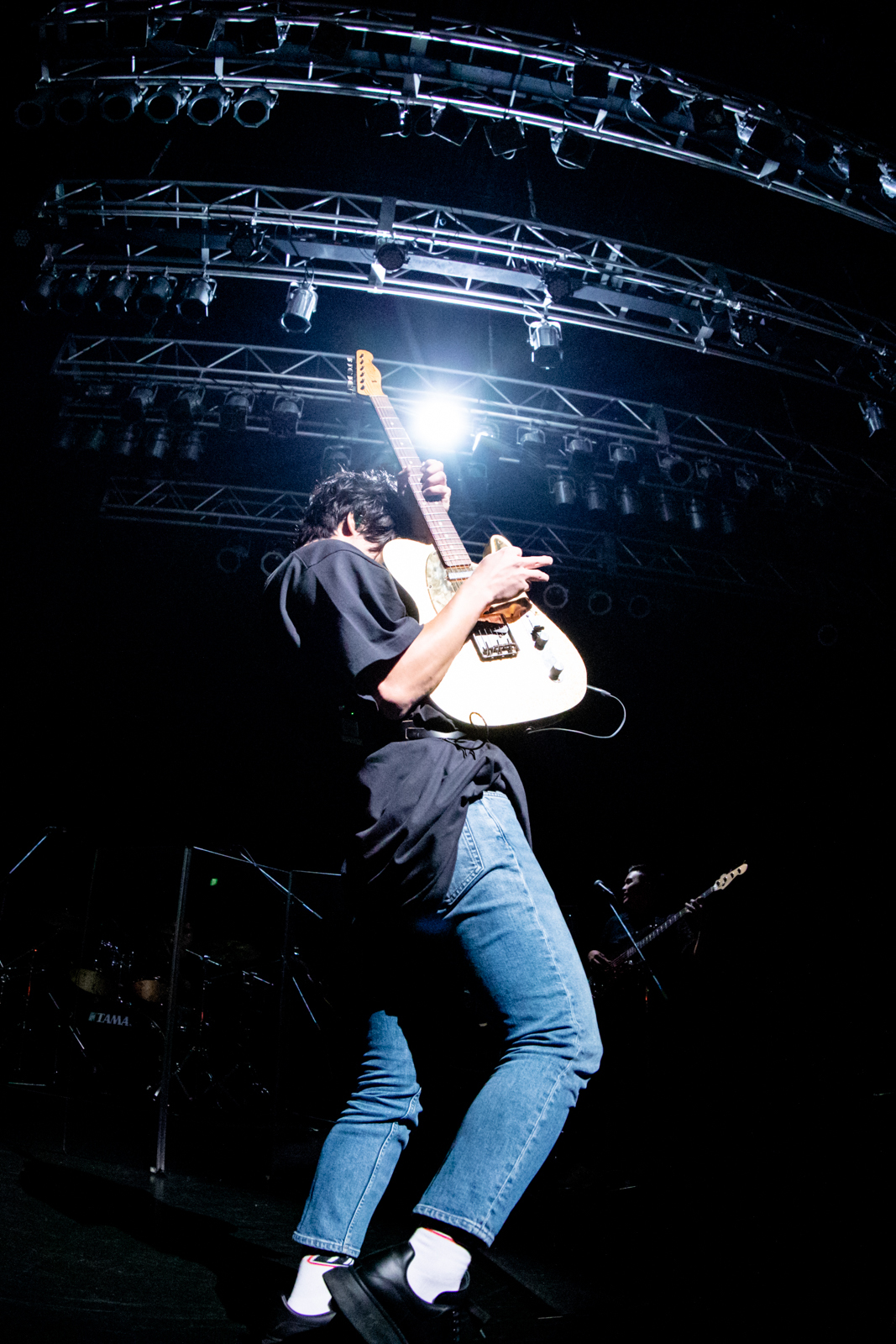 次はまたエレキに変え、クラウドの渋めなギターソロからかっこよく始まった、どこかジャジーな「別在我睡著的時候打電話給我」。間奏でのギターソロはまるでロックのように熱くアグレッシブ。途中でコール&レスポンスが始まり、だんだんと思いのままに難しく遊び始め、観客を楽しませる。そして「Yeah!」と煽りながらギターをかき鳴らすクラウドがフロアの温度をどんどん上げていく。