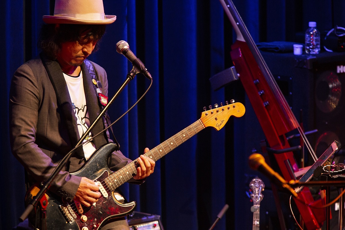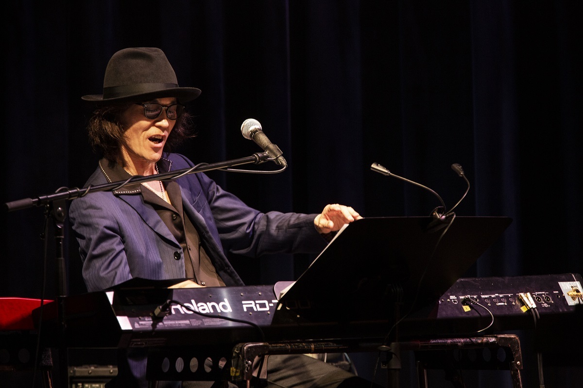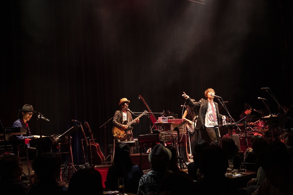 JUN SKY WALKER(S)のデビューから数えるとキャリア30余年、宮田和弥がBillboard Live TOKYOのステージに上がるのは意外にもこれが初めて。というか、来たことすら無かったらしく、このオシャレでちょっぴり格式高い会場を「僕の生活には無い空間」と冗談交じりに評すと、客席がドッと沸いた。初のビルボードではあるが、冒頭数曲と最初のMCの時点で、すっかり宮田のホーム感に包まれている。