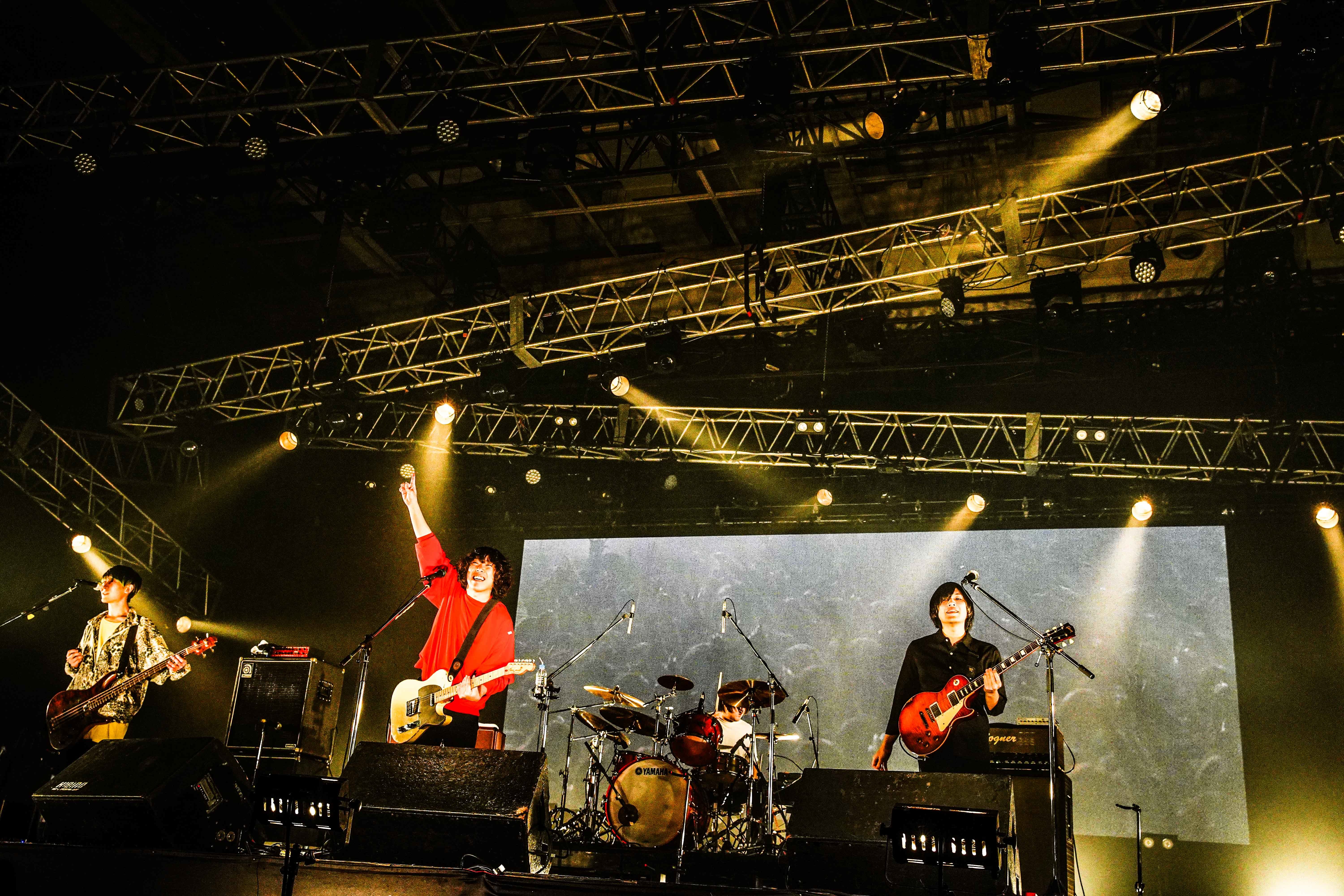 どうやらラストにもバンドらしいエピソードがあったようで……。「もうほぼ曲を立て続けにやっていくという中、最後の曲が終わったあと、メンバーみんなで集まって何かゴニョゴニョ相談してたんですよ。すると「あと1分半あるからもうちょいやる!」(TAKUMA/Vo. Gt)と言って。ああいうの好き(笑)!」(飯室)と、実にサービス精神旺盛な彼ららしい。