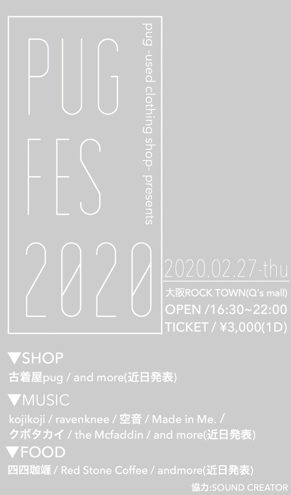 2020年2月27日(木)、ROCKTOWNにて『pug fes』が開催される。