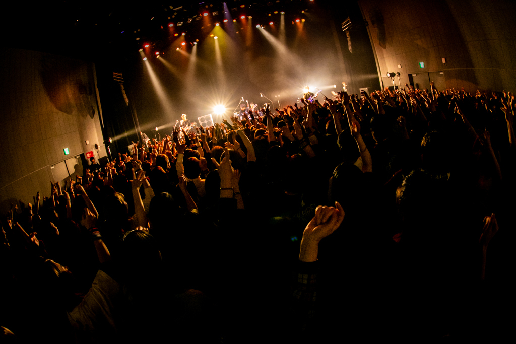 「この後、盛り上がる曲しか無いけど大丈夫?」とAKiがいたずらな笑顔を見せ、「STORY」で勢いよく始まった後半戦。「渋谷!突き抜けるぞ!!」と疾走感溢れる「Brave New World」で駆け抜けると、フロア中に拳と掛け声が挙がった「ミッドナイト/狂騒/DARLING:」で狂騒を生む。強固なバンドサウンドが音の塊となってぶつかってきた「Monolith」は、ツアーを経てライブの要となる曲に成長。歌声を合わせて熱狂する観客との相乗効果で、最高潮の盛り上がりを生んだ。