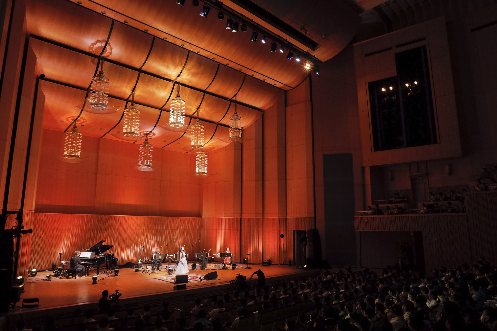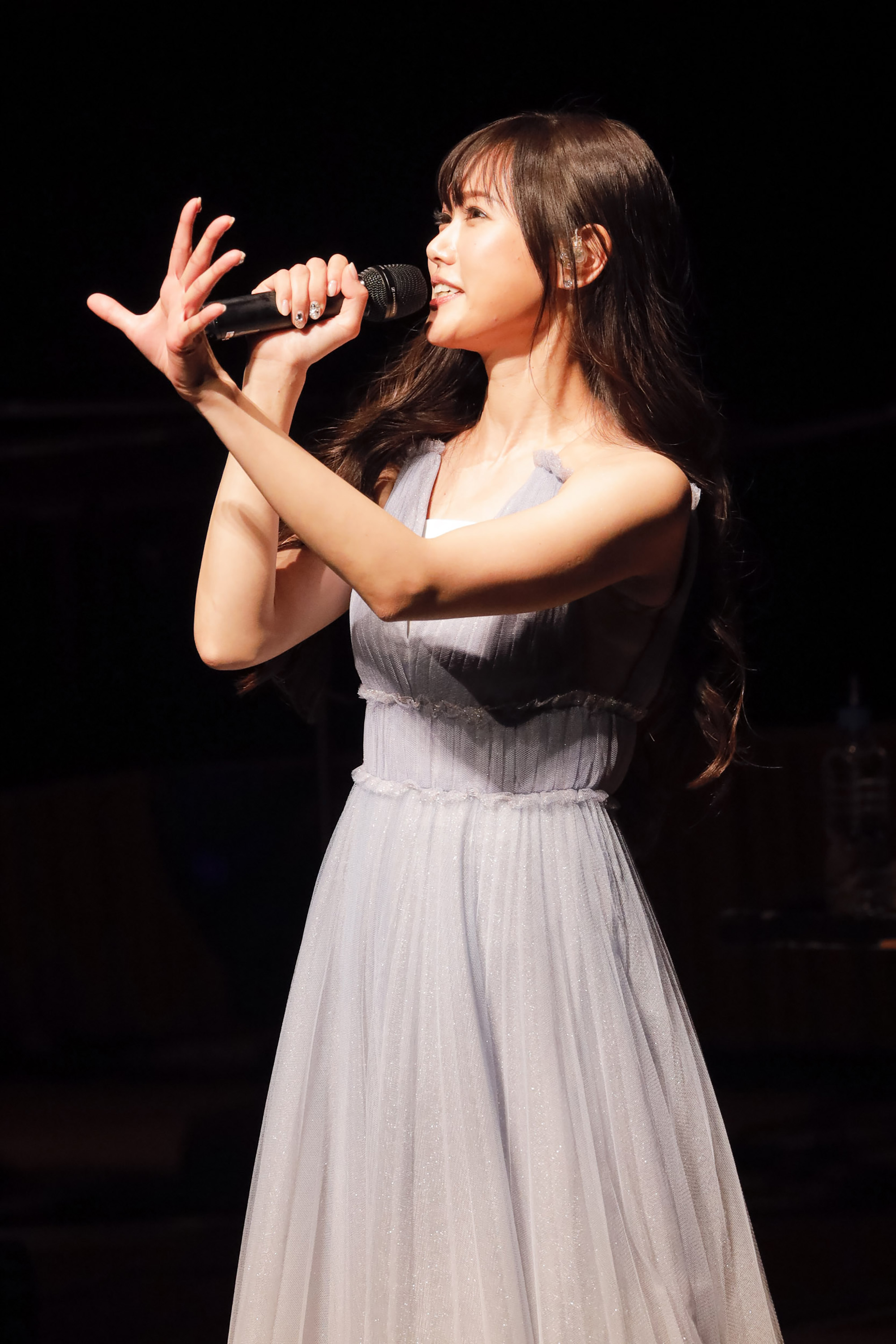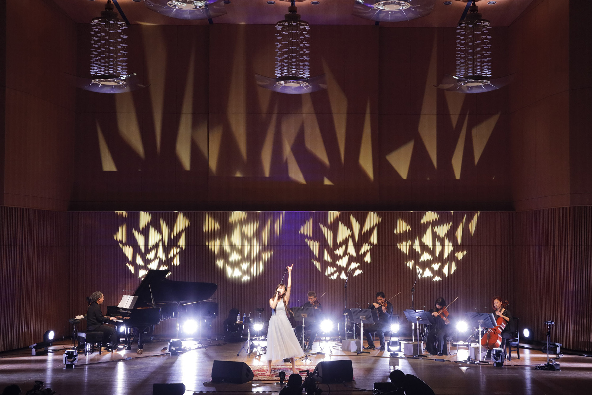 そしてアンコールの1曲目として、アニメ『響け!ユーフォニアム2』オープニング曲「サウンドスケープ」を披露。もちろんストリングスアレンジで、明るくはじけるような元気いっぱいの原曲とはまったく違う、優雅なピアノと弦楽器の音にふんわりとのっかるような、やわらかで温かな歌声だ。