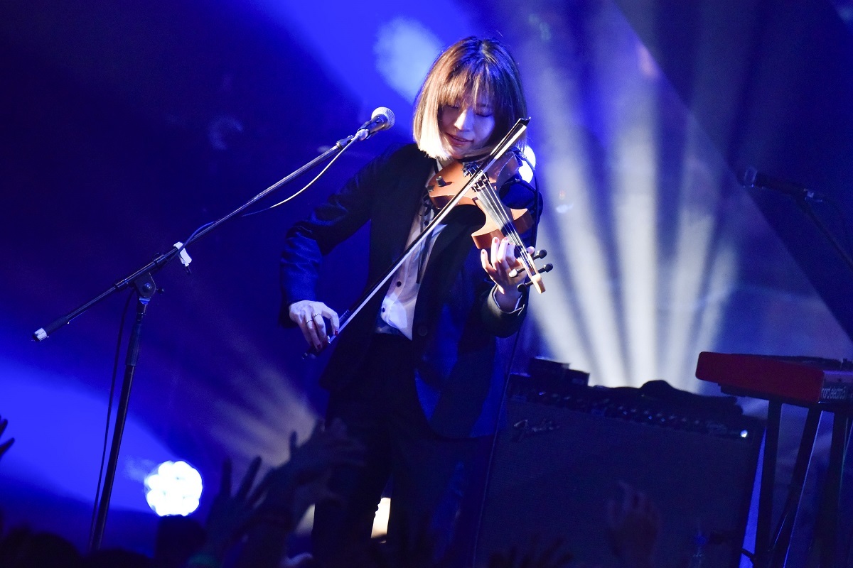 金井の挨拶もそこそこに、クリスマス・ライブには欠かせない「My Greatest Treasure」から「LEMONADE」へ。原曲で金井とデュエットした長屋晴子(緑黄色社会)は最高だったが、ライブ・バージョンを任された真緒だって負けちゃいない。歌にヴァイオリンにキーボード、近年のライブでの彼女の存在感は本当に素晴らしい。さらに、『Roclassick』シリーズの代名詞とも言える「荒狂曲“シンセカイ”」から、「ワルキューレの非行」へと、荒ぶるラウド・チューン二連発。柿沼広也のギターが、笑っちゃうほど常軌を逸して歪んでる。バンドの気合も満点だ。