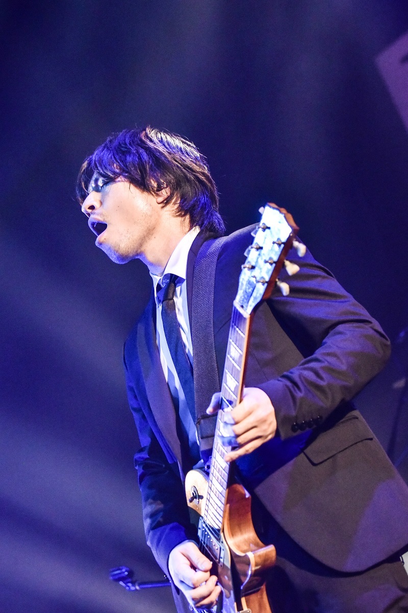 「Perfect Gray」「the cookie crumbles」と、スピード・チューンのあとに置かれたミニマルでクールな「高嶺の花のワルツ」の、じわじわ効いてくる温熱効果がいい感じ。一転して、「Animanimus」では金井がハンドマイクを握り、まがまがしいほどのヘヴィなサウンドに乗ってステージを右から左へ。からの、メタリックなダンス・チューン「mummy mummy」に繋ぐ流れが実にスムーズ。痛快だ。