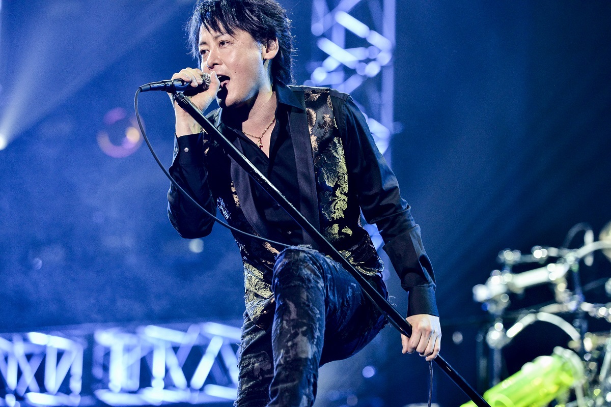 「さいたまスーパーアリーナ、待たせたな」と挨拶を告げたRYUICHIは、こうして誰一人欠けることなくこの5人でいまもステージに上がれていることに感謝し「そういう奇跡が1日でも長く続くように、精神的にはもっともっと上を目指していきたいと思ってます」と力強く宣言。そして「のっけから飛ばしていくぞ!」と場内を煽って始まったのは、まさかの「ROSIER」。これまでLUNA SEAのライブ終盤を盛り上げるキラーチューンをここから連発して前半パートに投下していく。