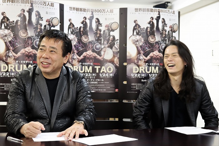 「TAOの舞台ってオールジャパンの、最高で最強の舞台を作っているイメージがある。今回は制作陣それぞれが自身のベストを尽くしていただいた」と嬉しそうに話すフランコは、「ザ・ドラマーズという公演を200弱くらいやってくると、もっとああしたかった、こうしたかったという想いが沸いてくるんです。それをずっと貯めておいて一気に爆発させるのがこのFINAL。音楽も全部変えてしまうので、何回もザ・ドラマーズを観に来ていただいたお客様でもびっくりされるくらい変わったものをお見せできると思います」と語り、その言葉に岸野も大きくうなずいていたのが印象的だった。