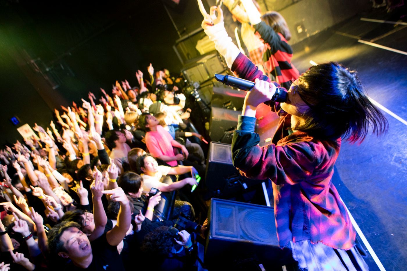 全体の1/4を消化する頃には、メンバーの声も掠れ始めたが、気持ちのこもったパフォーマンスで熱量を落とさずそのまま走り続ける。観客が入れ替わった第2部では、デビューアルバム『Brand-new idol Society』の衣装にチェンジし、「KiSS MY ASS」「TRAP」「FUCKiNG OUT」といったキラーチューンを初パフォーマンスすると、ライブの盛り上がりはピークに。