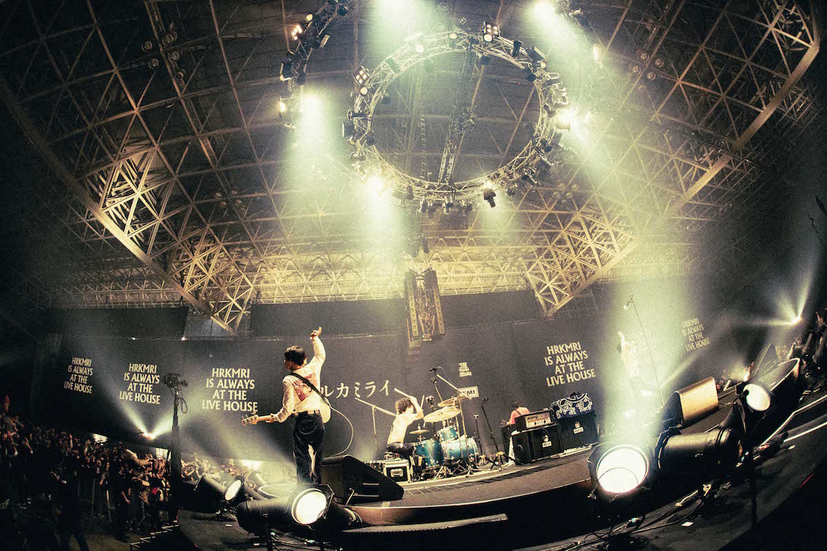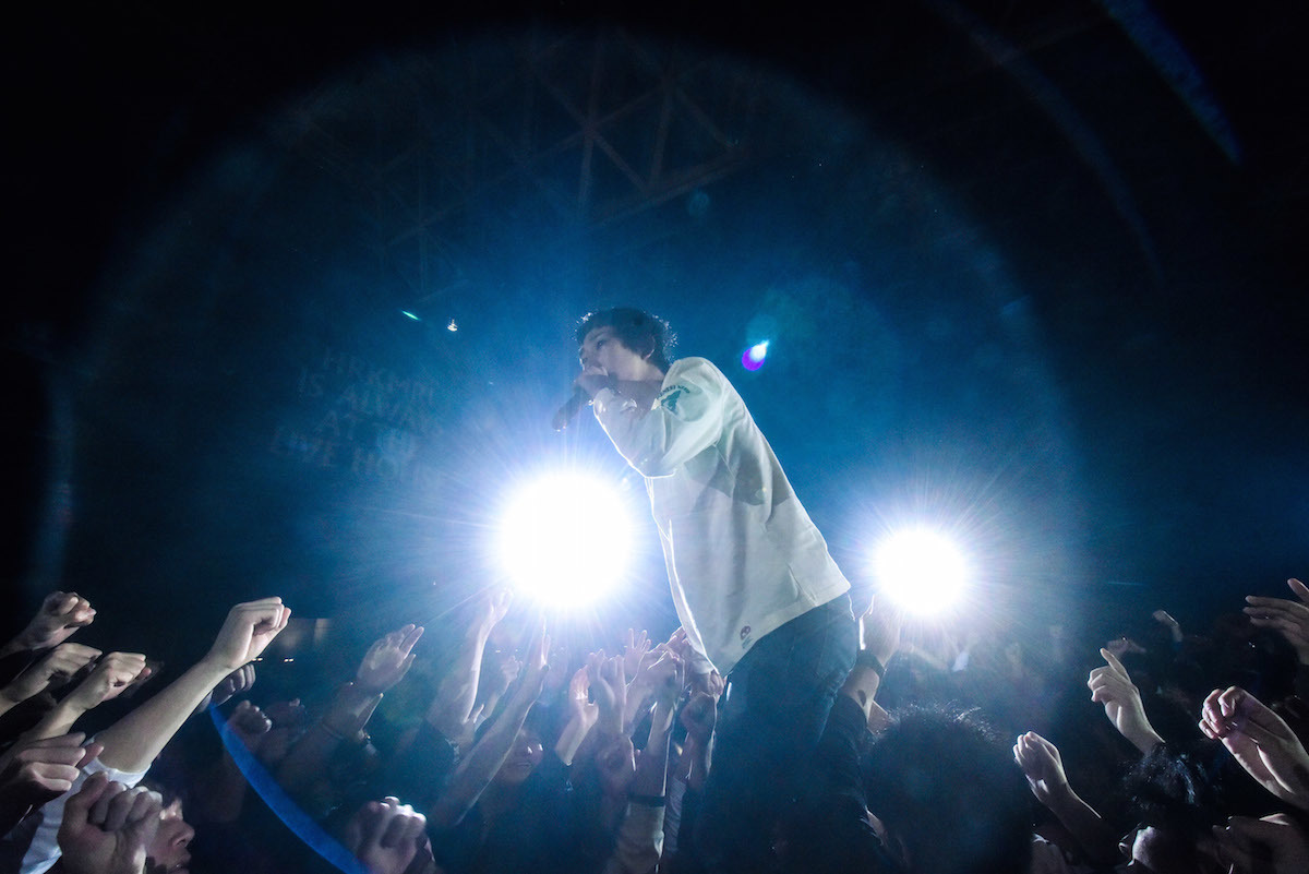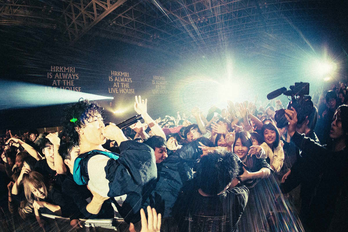 「ファイト!!」は5回やったし、「Tough to be a hugh」は4回やった。橋本学(Vo/Gt)がステージを降りた回数は数えきれなかったし、ほとんど全部の曲で大合唱が起こった。ハルカミライがバンド史上最大規模のワンマンとして、幕張メッセ展示場ホール1で開催したワンマンライブ『A CRATER』は、8,888人を収容する広大なフロアをライブハウスに変える一夜だった。