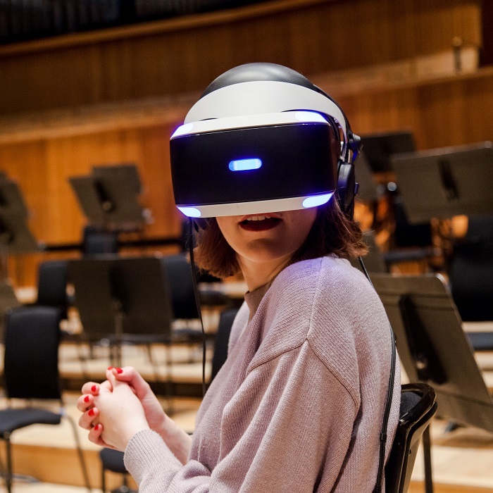 本プログラムは、エサ=ペッカ・サロネン率いる英国名門オーケストラ、フィルハーモニア管弦楽団の大型来日公演に合わせて行われるもので、VRを使ったデジタル・プログラムは、同楽団が先進的な取り組みとして力を入れているものだという。参加者は、VRヘッドセットとヘッドフォンを装着。フィルハーモニア管弦楽団のコンサートを360度の映像と臨場感あふれるサラウンド音響で、ステージの上のオーケストラの一員になったような没入感を体験できる。