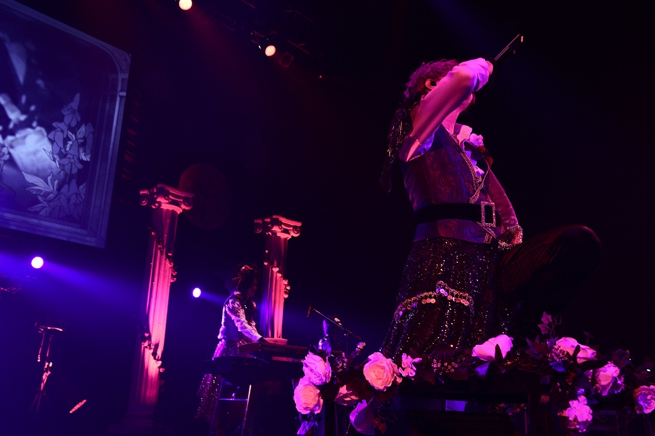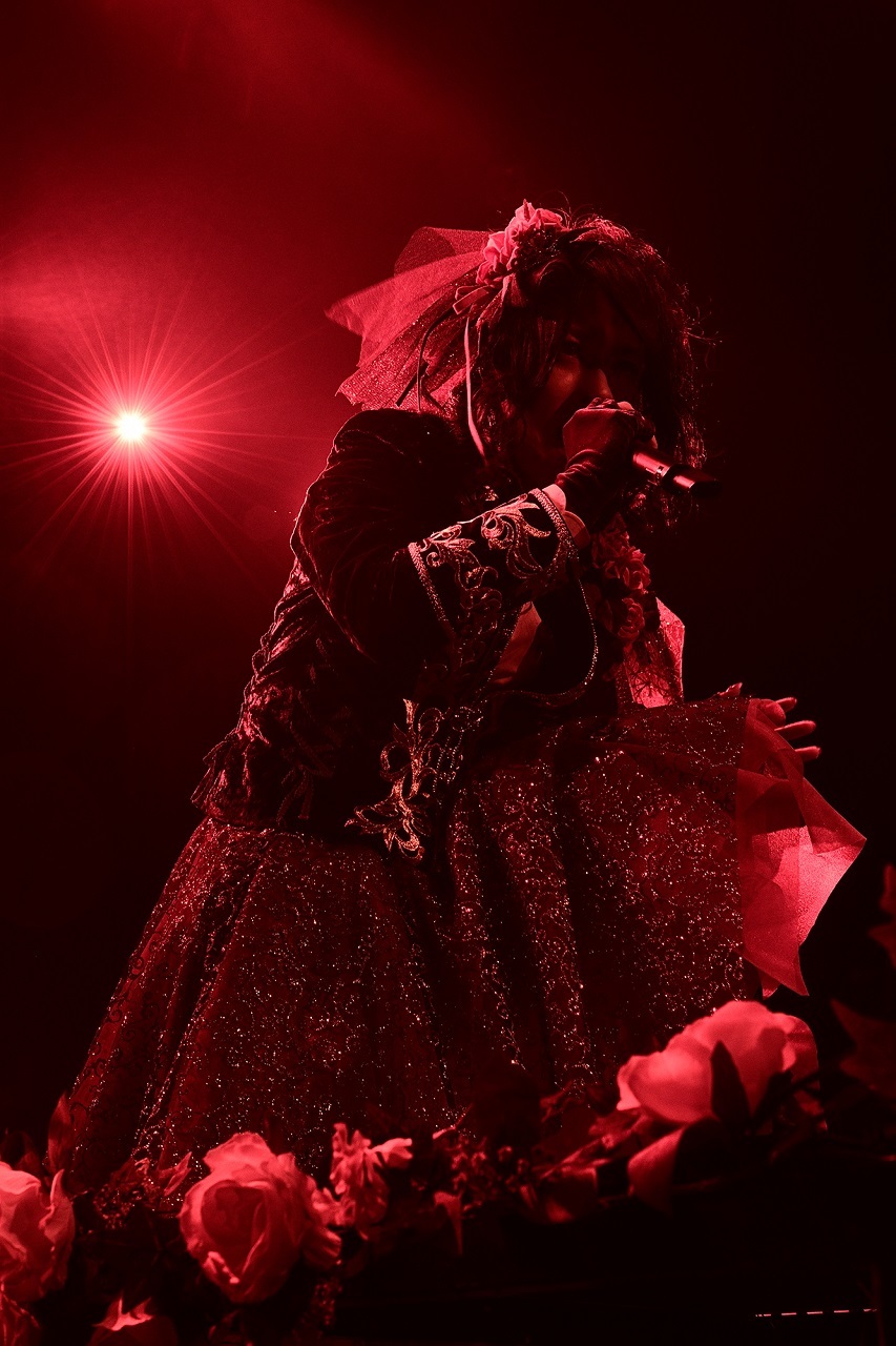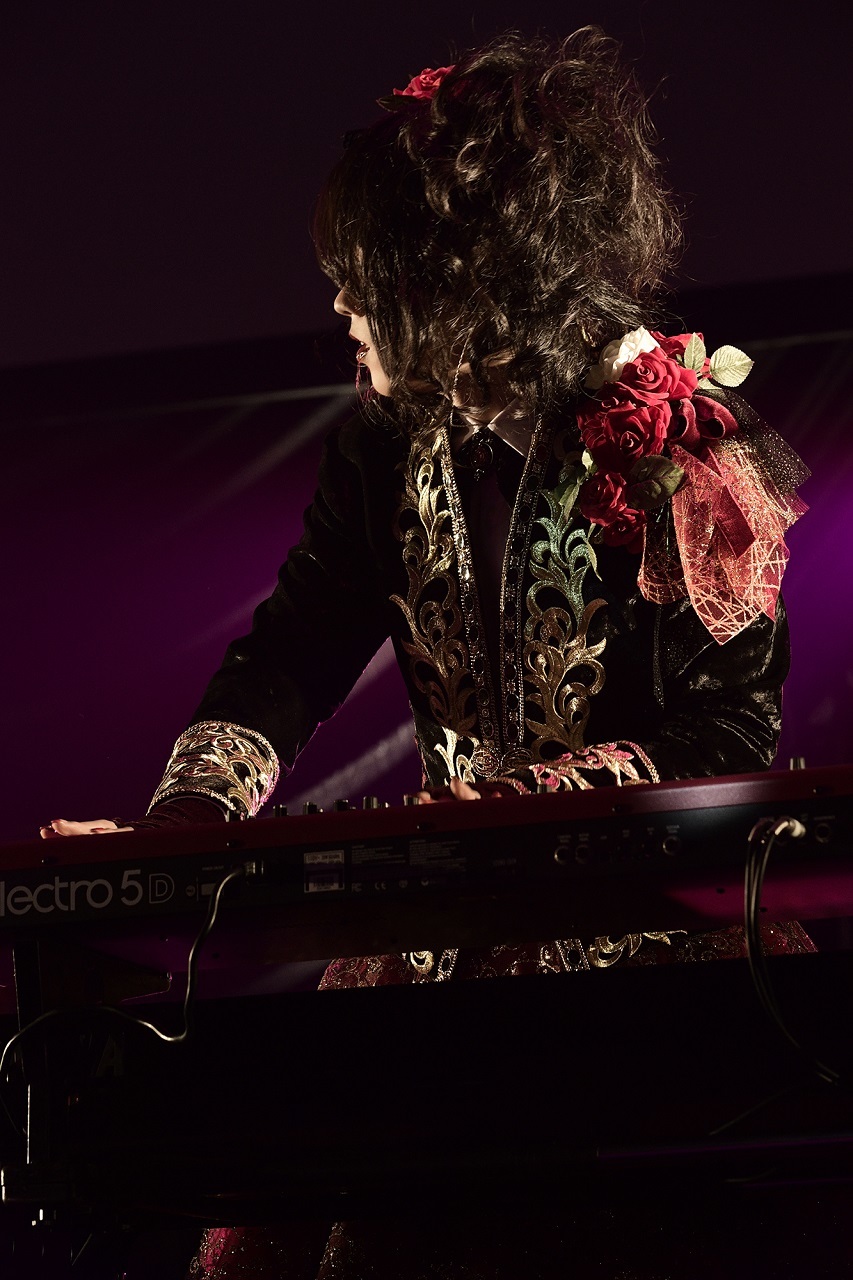 本編中盤ではもともとluzのソロ名義でのアルバム『Reflexion』にも収録されていた楽曲であると同時に、このたびはアルバム『Q&A』の中で再収録された壮大なバラード「光」や、奏音69が自らボーカルをとりステージのセンターでマリオネットのごときパントマイム要素を取り入れながら単独パフォーマンスを展開した「ネクロの花嫁」が披露される一幕もあり、あらためてluzと奏音69の醸し出す表現力そのものに唸らされることになったのも、今回のライブの大きなポイントであった気がする。これまで、Royal Scandalのライブでは時にゲストボーカリストを迎えたりしていたこともあっただけに、luzと奏音69だけでもこれだけの世界観を呈示することが出来る、という点に圧倒されたのである。