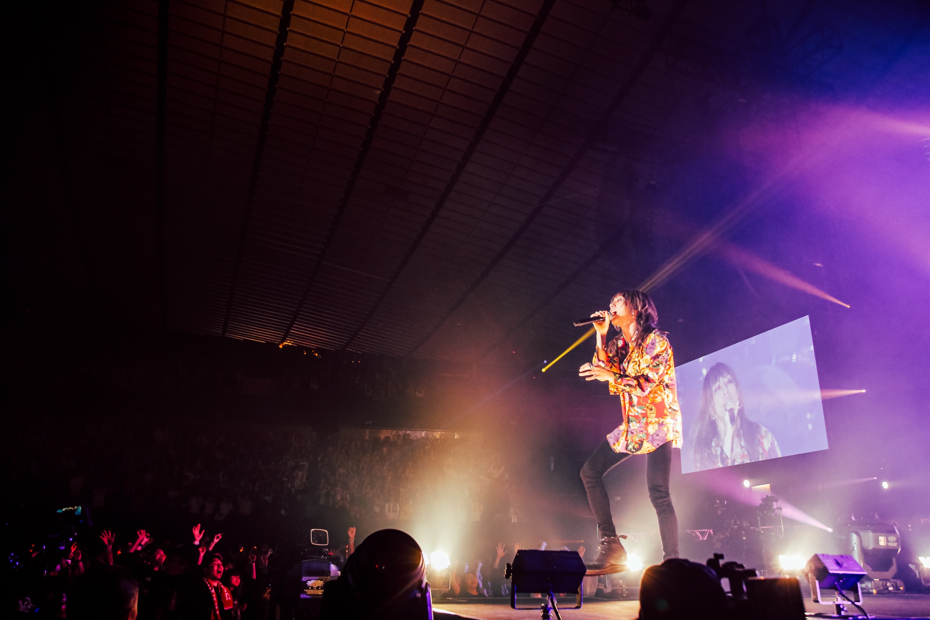 その極めつけとも言えたのが、「知らねぇ誰かが線を引くんだよ、壁を作るんだよ。俺たちとあなたで、その壁を叩き壊そうと思って、俺は今日ここに立ってる」とブチ上げた、「東京流星群」。東京生まれの4人と、その共犯者は1万2000人。スクリーンに映る流星群をバックに歌い上げるドラマティックな光景と、みんなが声を上げるエモーショナルな4分間に、声の力を、形のない音楽の力を、これでもかと突き付けられる。「嬉しい涙」でも、そこに在る全ての言葉と目に映る景色が、立て続けに感情に訴えかけてくる。
