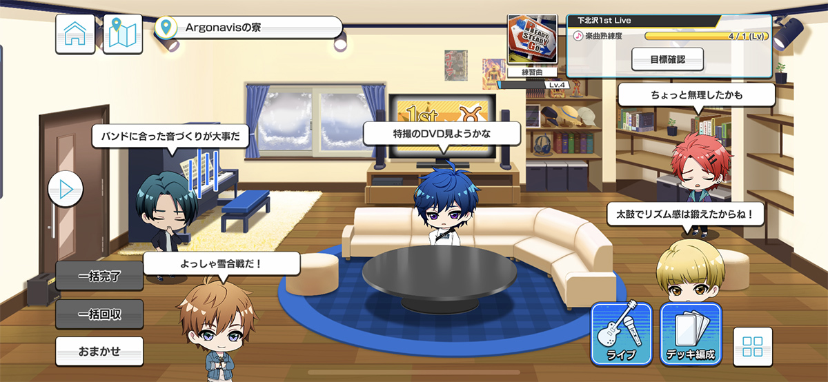 ゲーム「AAside」のプレイ画面 (C)ARGONAVIS project. (C)DeNA Co., Ltd. All rights reserved. (C)bushiroad All Rights Reserved.