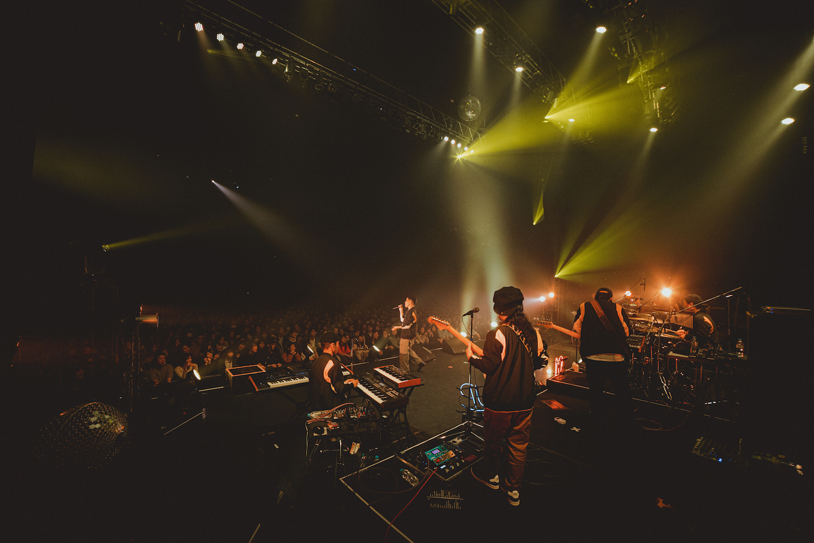 改めてSoulflexの面々を一人ずつ紹介したSIRUPが、はにかむメンバーたちを見てしみじみと言った。「俺、なんかめちゃくちゃ嬉しいわ」 拠点である大阪で2,500人が見つめる大きなステージに、約10年に渡りともに過ごした仲間たちが揃った瞬間の彼らの喜びを想像すると、こみ上げるものがあった。