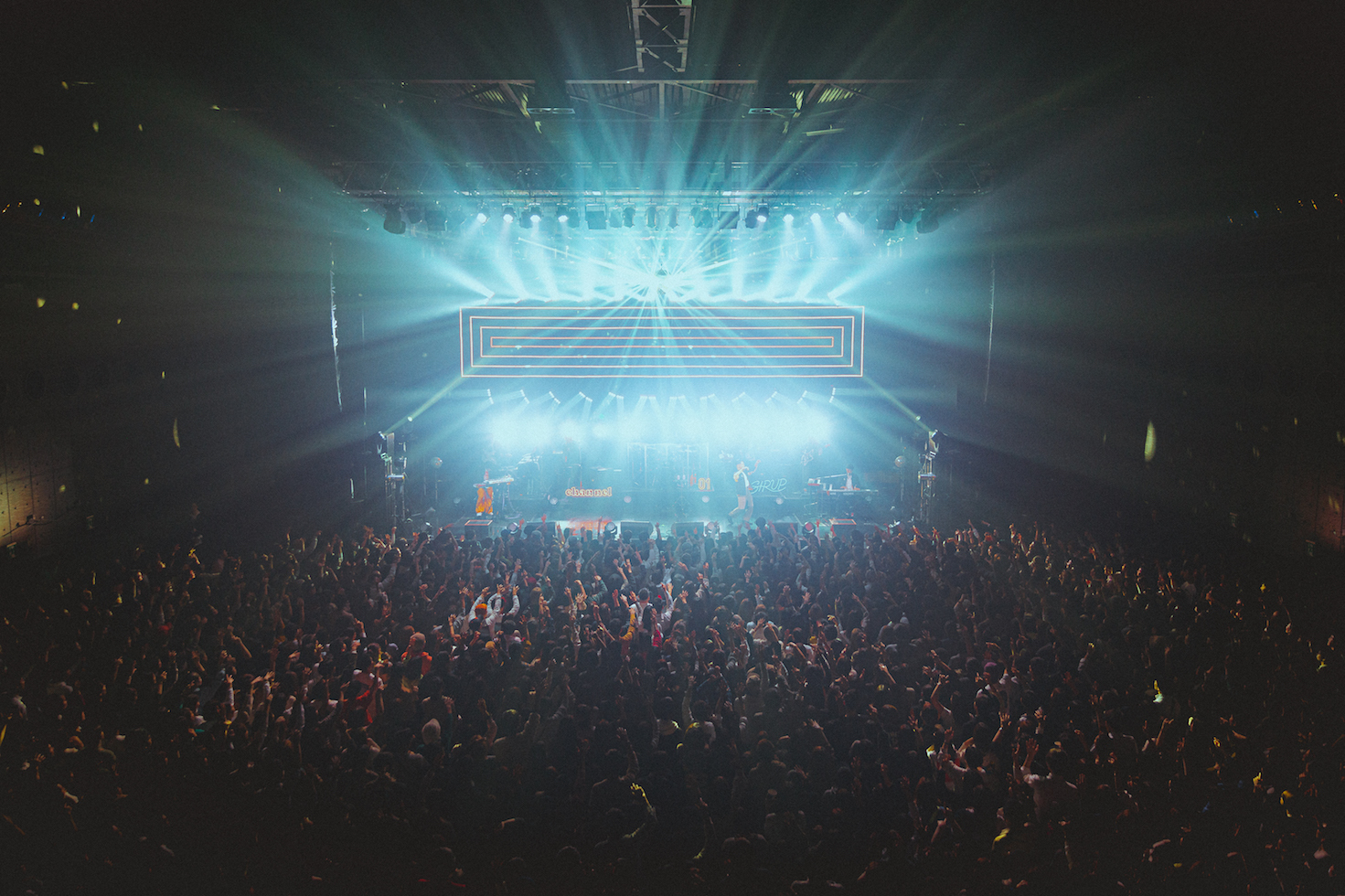 12月12日(木)の夜は冷え込んだが、ZEPP Nambaに集まった2,500︎人は開演前からDJ YonYonによる選曲で心と体を温めていた。ピンク色の照明のもと、YonYonはSIRUPをはじめこれからステージに登場する面々の楽曲をヒットナンバーに織り交ぜてプレイし、フロアの期待感を高める。YonYonがDJブースを後にすると、1階のスタンディングエリアから2階席までを埋め尽くした観客たちは、SIRUPのロゴを模した青いネオンライトが光るステージに熱い視線を注いだ。
