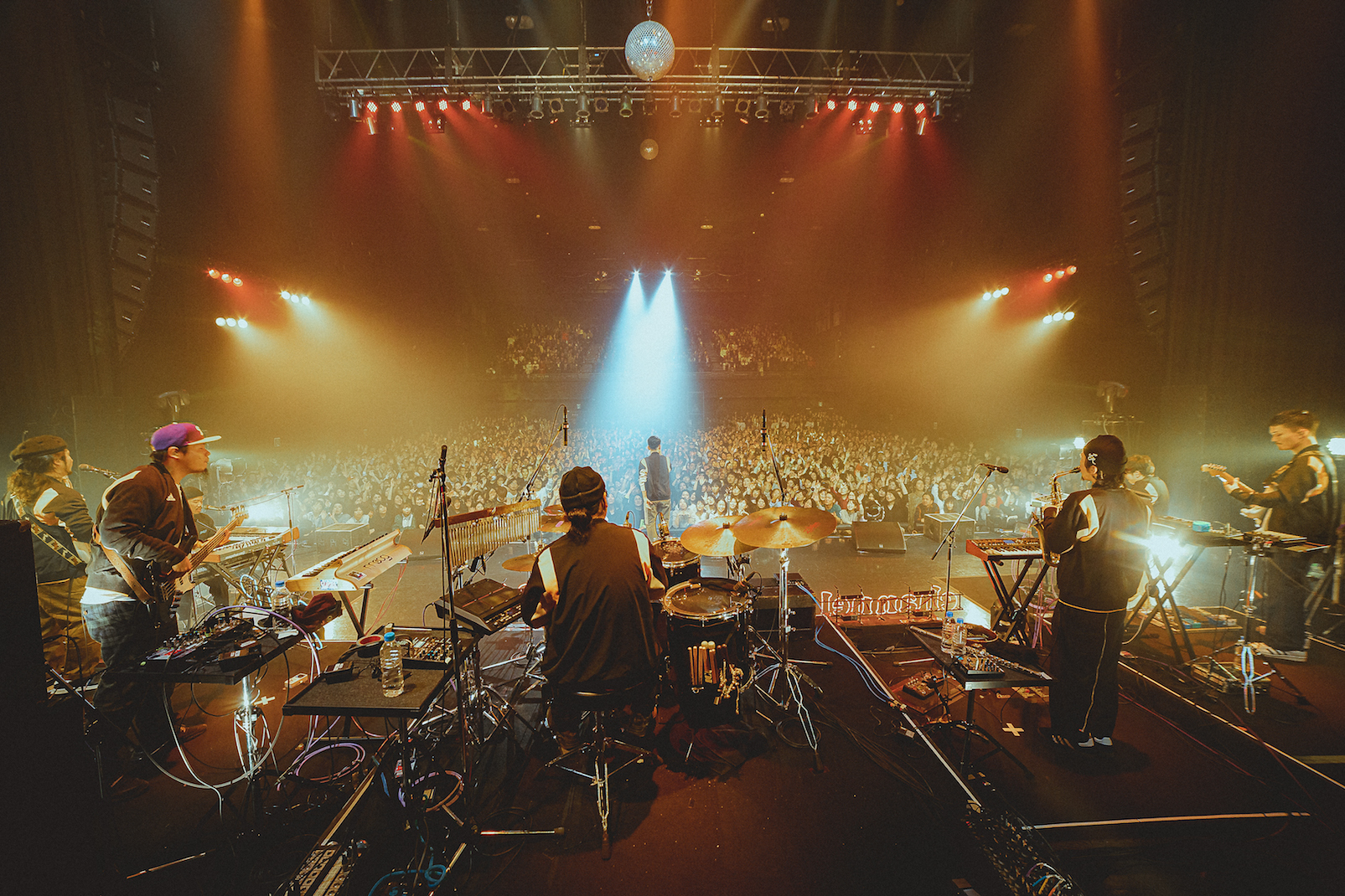 「全員がアリみたいに小さく見えるくらい、すごく気持ちいいです!」 WILYWNKAが顔をほころばせる。「WILYWNKAとは今日も髪型が一緒やし、育った街も一緒やな」「先輩(SIRUP)の通学路で僕は遊んでたんですよ!」と、2人の関係性が垣間見えるトークのあと、WILYWNKAはステージを後にした。SIRUPは「一度、バンドのみんなに拍手を!」と、この日の豪華共演を支える7人のバンドメンバーを讃える。「あっという間やから、油断してたら終わるよ。後半戦も盛り上がっていこうぜEverybody!」