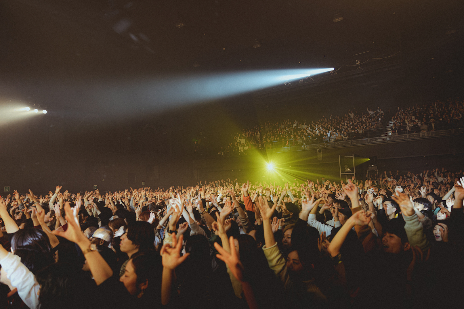 「Maybe」のあと、YOSA&TAARとのコラボレーション楽曲「Fever」をバンドアレンジで聴かせたSIRUPが、「みんな、自由に遊ぼうか」と言うとサングラスをかけたTENDREが現れた。2人の遊び場を覗くような感覚を味わえる「PLAY feat. TENDRE」へ。サビでハーモニーを聴かせたあと、TENDREが自身のパートの歌い出しでサングラスを外すと、観客たちが大いに沸かせた。