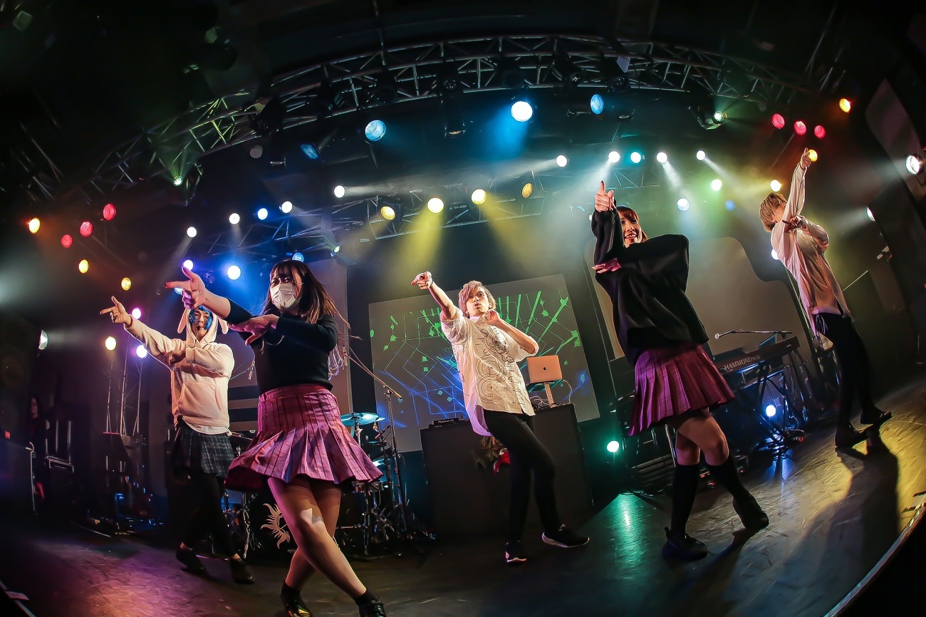 トップバッターはコラボナンバーで、足太ぺんた、仮面ライアー217、教授、芝健、なよは、りりりの6人の激しいダンスパフォーマンス。時折見せる艶っぽい表情には、男女問わず黄色い歓声が巻き起こる。コーナーの最後に、「めろちんでした! M FES楽しみましょう!」と言ったDJ melochinがバンドにバトンタッチ。
