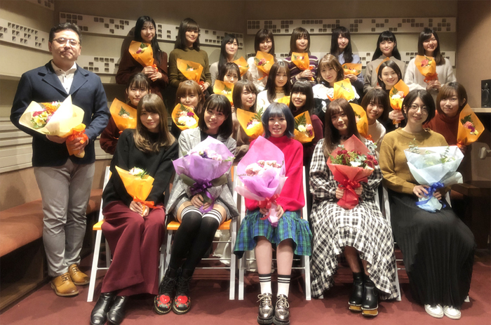 【二列目 左から】望月涼子役:石見舞菜香/坂下花恋役:高橋未奈美/黒井ミサ役:上田麗奈/東雲あきら役:藤原夏海/当麻あこ役:河野ひより/辻まりな役:田所あずさ