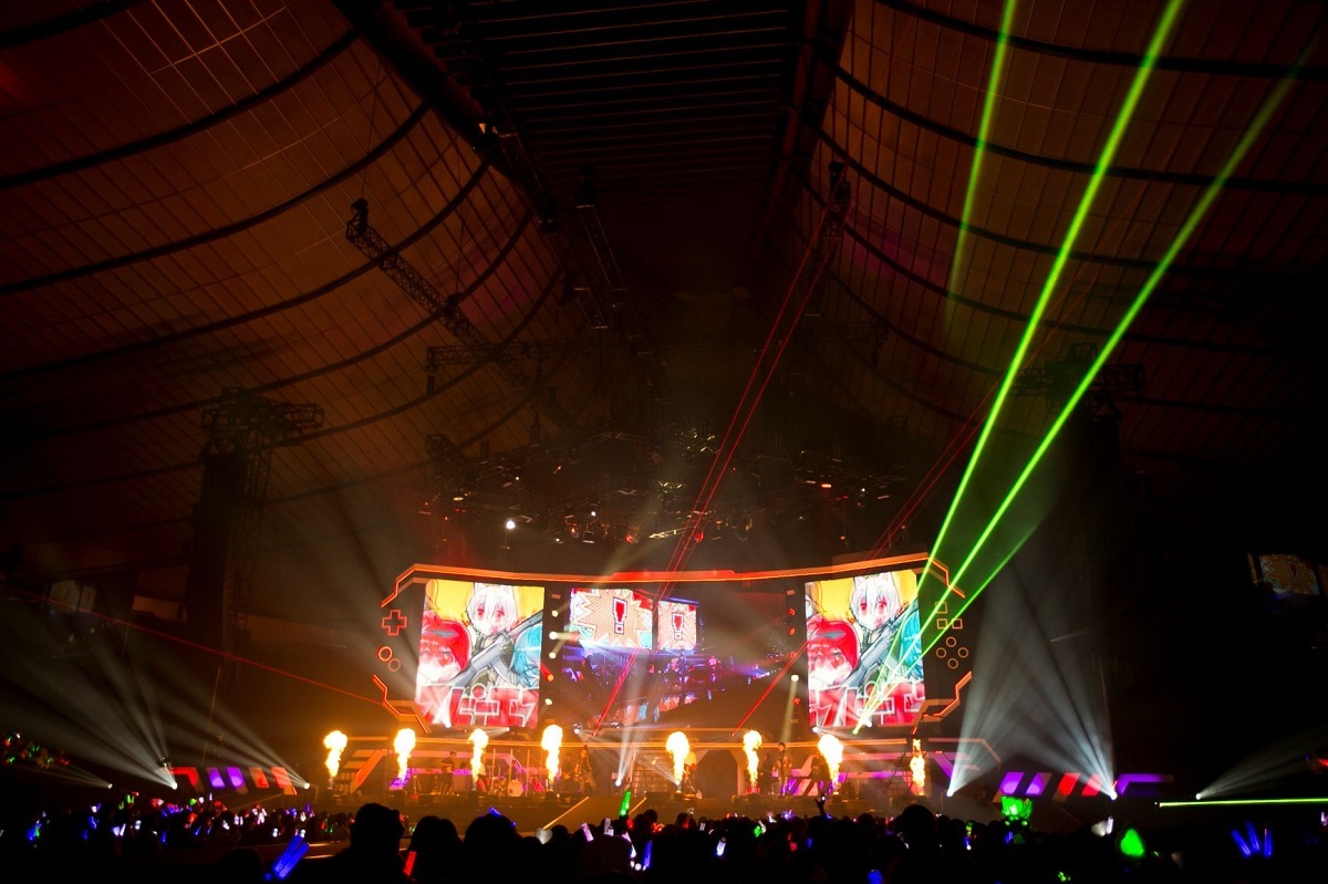 4人のオリジナル曲第2弾「エフピーエス」の動画と同じ衣装で全員がそろった「ぼうけんのしょがきえました!」からは、いよいよそらまふうらさかの真骨頂を発揮して、「しんでしまうとはなさけない!」ではなんとそらるがさらわれた姫に! わちゃわちゃトークの最中、突然の「こんなところに銃が!」というまふまふの一声からさんざん遠回りをしての「エフピーエス」では、演出のファイヤーボールがステージ前にいくつも噴き上がり、再びダンスしながら歌う4人に、クラップとコールを送るオーディエンス。とんでもない高揚感の中、4人のラストポーズもばっちり決まった。