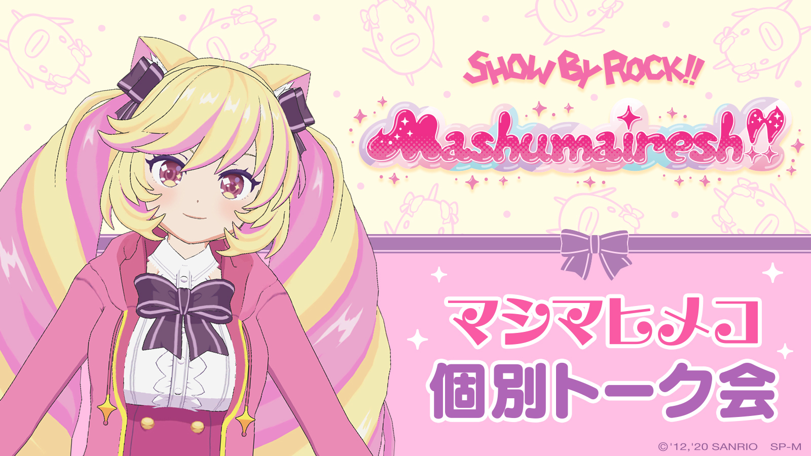 パルス株式会社が開発・運営するバーチャルライブアプリ「INSPIX LIVE」で、 TVアニメ『SHOW BY ROCK!!ましゅまいれっしゅ!!』で活躍中のガールズバンド「Mashumairesh!!」のメンバー『マシマヒメコ』の無料個別トーク会を、1月26日(日)に開催することが決定した。