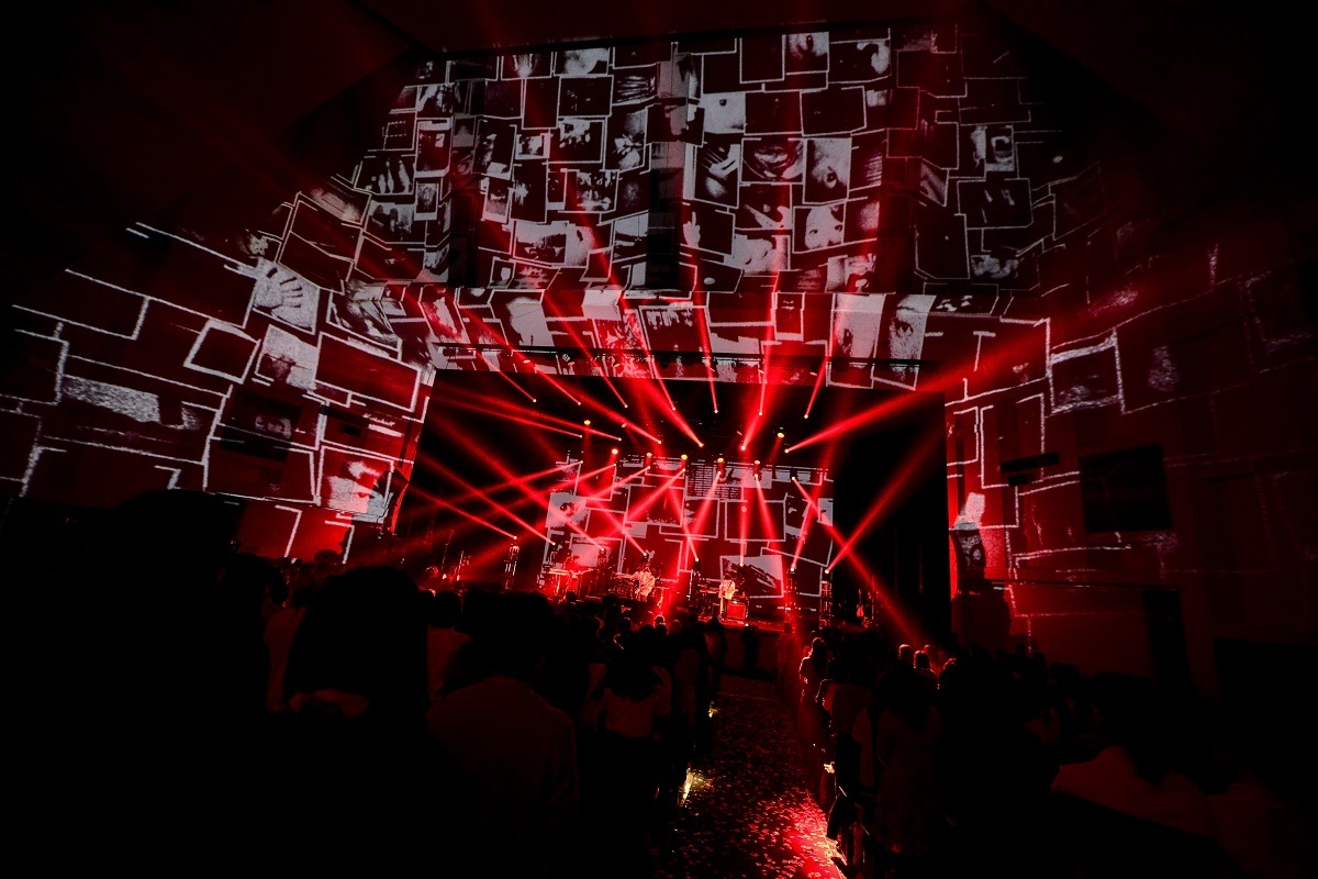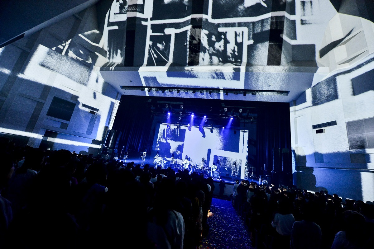 そんなポジティヴな空気に満ちた空間を「Kaonashi」が一変させた。彼らが音楽で描き続けている「光」や「希望」をより強いものにすべく、その正反対に存在する「闇」を敢えて描いた作品『blue』に収録されていたこの曲は、怪物のうめき声のような不気味な音を出す内澤のボウイング奏法に始まり、暗闇の中を怪しく蠢くようなベースや、切迫感や焦燥感を駆り立てるようなビート、悲痛なまでに絶叫するギターと、すべてを黒く塗りつぶすようなダークな雰囲気が立ち込めている。また、客席の足元まで届くように焚かれていた大量のスモークや、おびただしいほどの数の人間の瞳がステージを覆い尽くすプロジェクションマッピングも、楽曲への没入感を凄まじいものにしていた。『blue』は、彼らの歴史の中でもとりわけ異色作だったこともあり、様々な意見があったそうだ。しかし、いつもとは異なるアプローチに果敢に挑んだからこそ、そこで得たものはとても大きかったと思う。事実、そんな壮絶な世界を描いた後に生み出された「Prism」は、瑞々しさと煌めきに満ち溢れていて、身も心も多幸感に包み込まれるようだった。